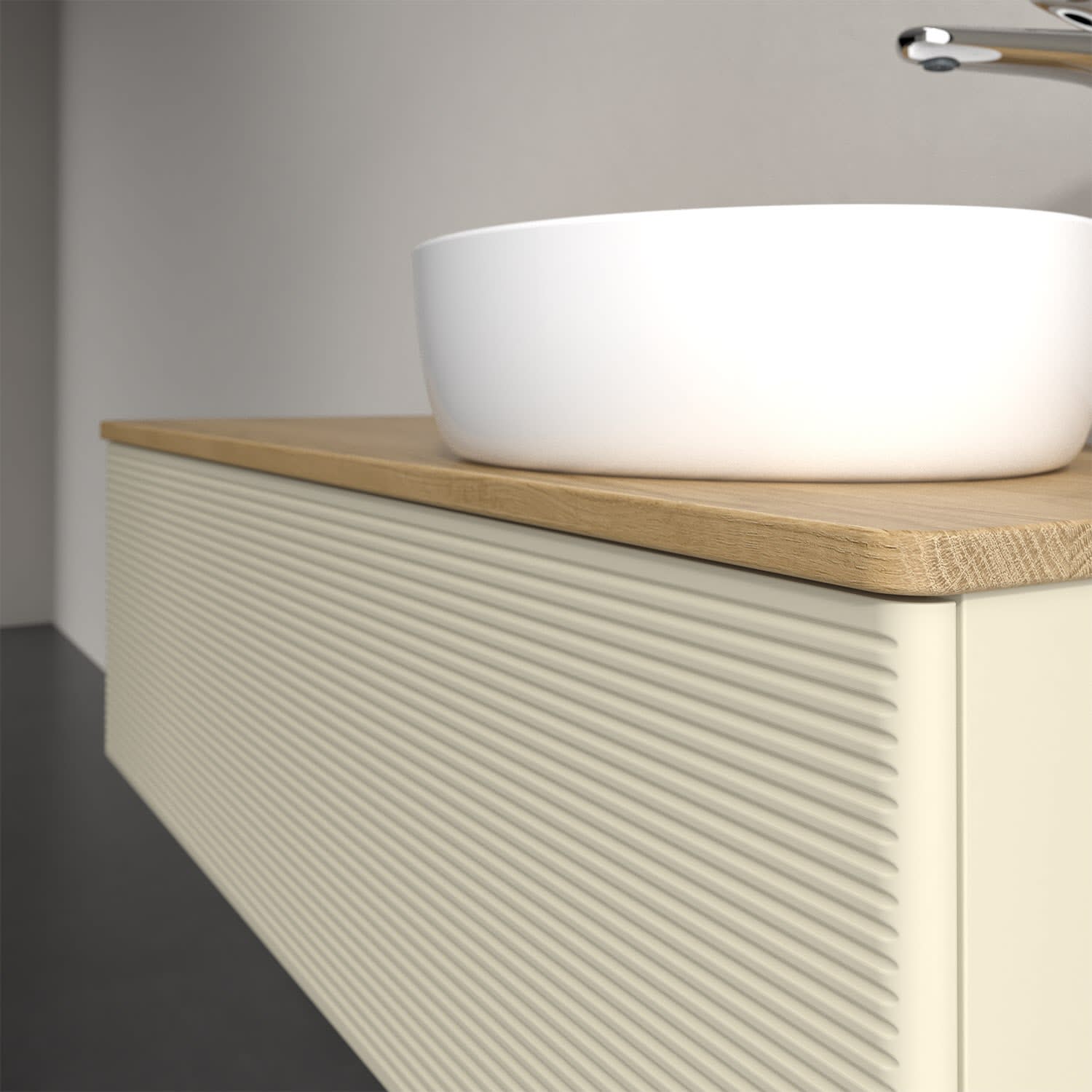 Für diesen Waschbeckenunterschrank stehen Ihnen Aufsatzwaschtische aus verschiedenen Serien zur Verfügung (siehe "Passliste" unter Downloads). Ein ausgewähltes Beispiel finden Sie im Zubehör. Den Waschtisch bitte separat mitbestellen.