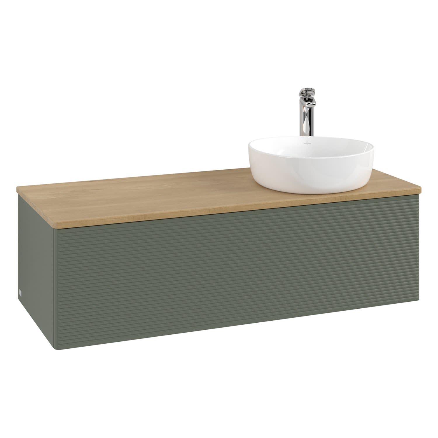 Villeroy & Boch Antao Waschbeckenunterschrank, 120 x 36 cm, 1 Auszug mit LED-Licht, Front mit Struktur, mit Hahnloch, für Waschtisch rechts