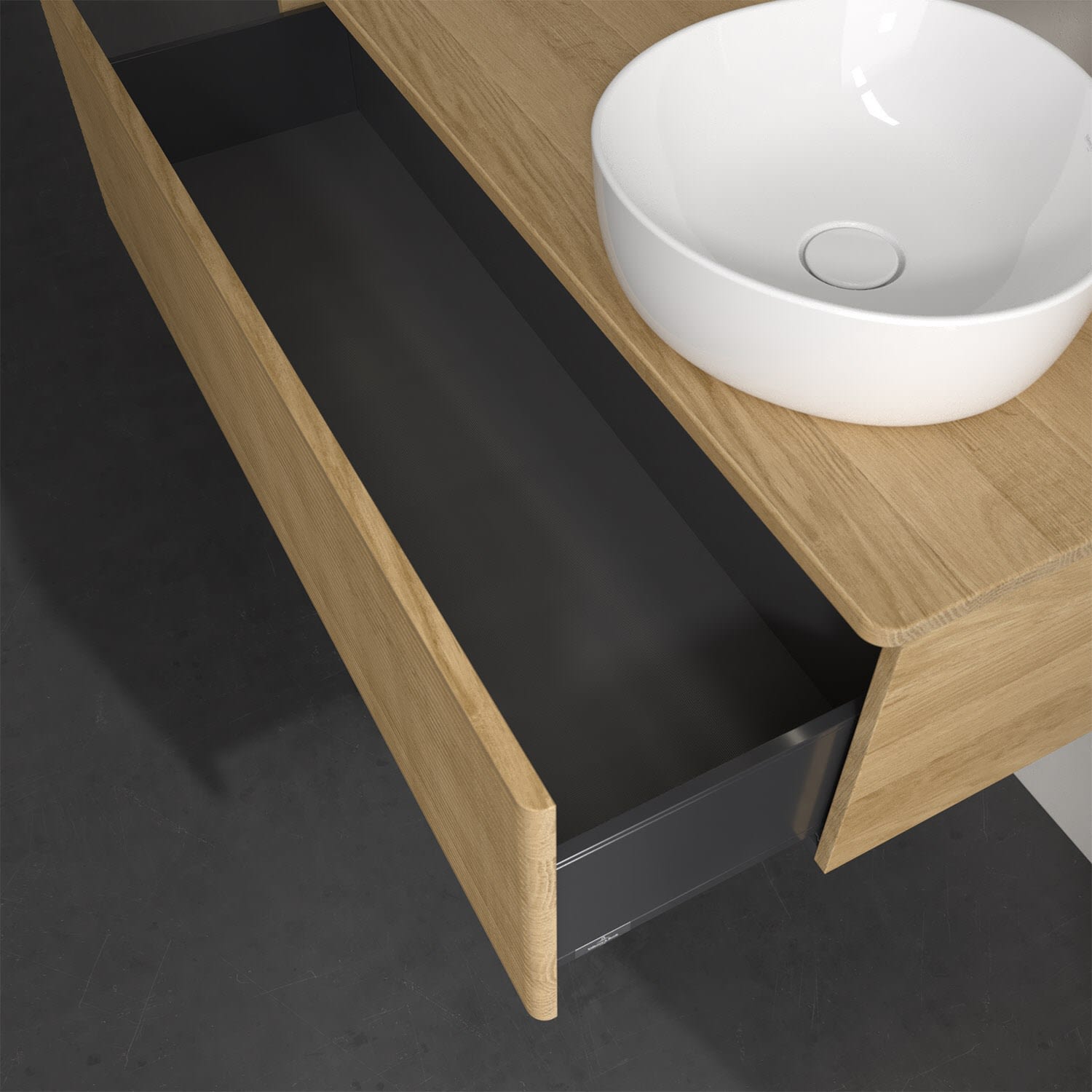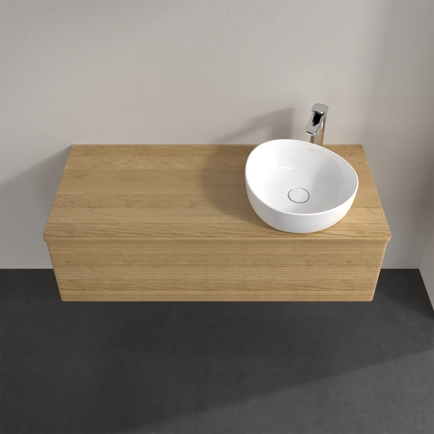 Villeroy & Boch Antao Waschbeckenunterschrank, 120 x 36 cm, 1 Auszug mit LED-Licht, Front mit Struktur, mit Hahnloch, für Waschtisch rechts