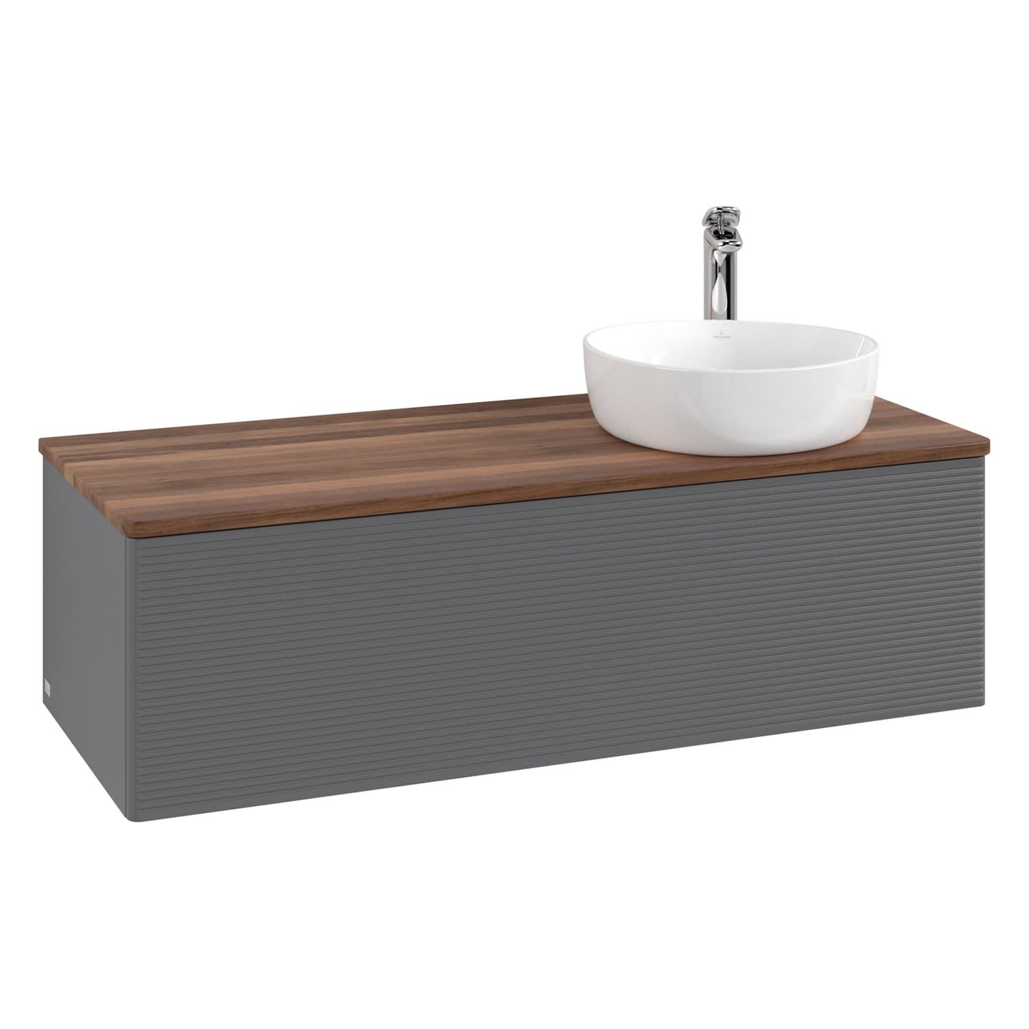 Villeroy & Boch Antao Waschbeckenunterschrank, 120 x 36 cm, 1 Auszug mit LED-Licht, Front mit Struktur, mit Hahnloch, für Waschtisch rechts