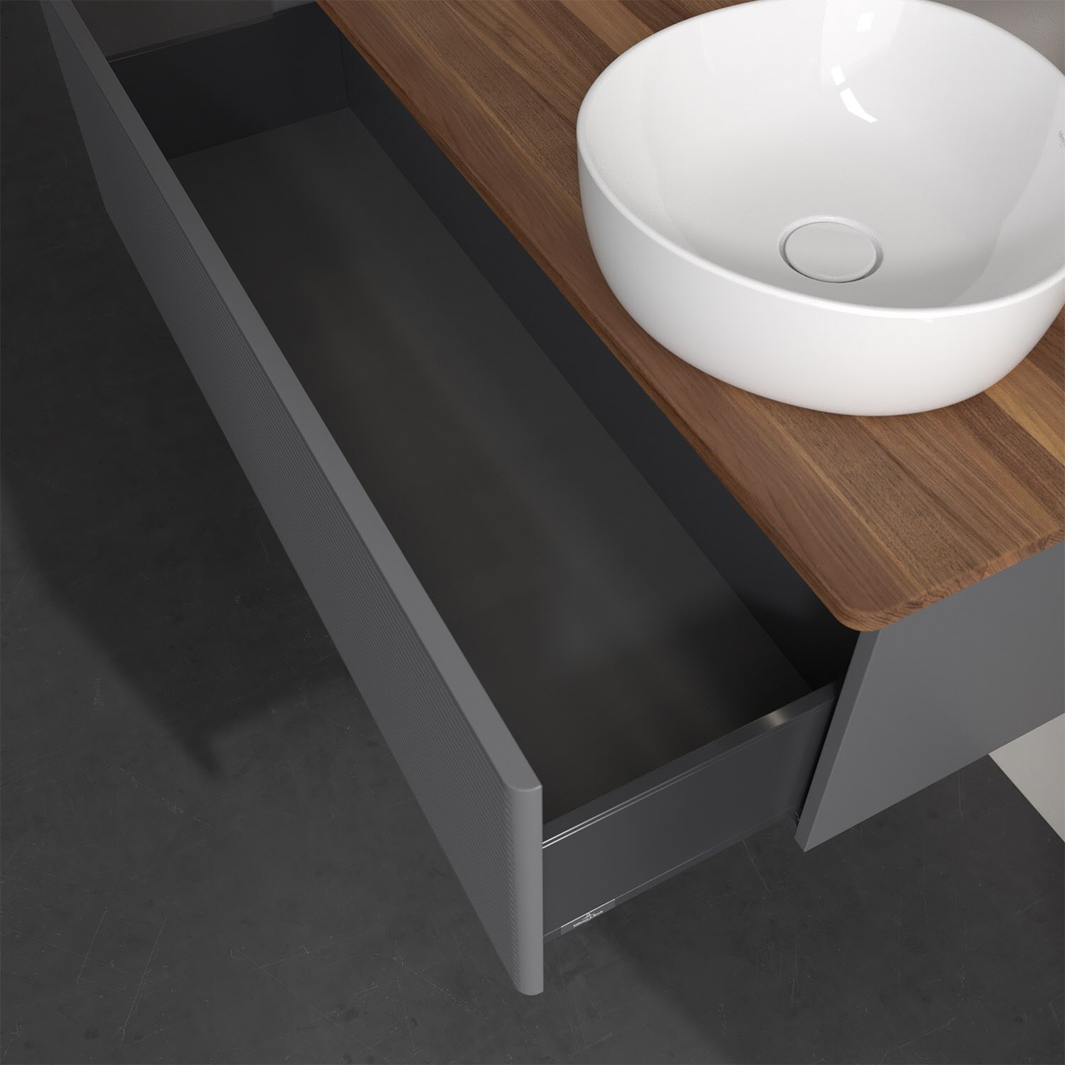 - kein Umfallen oder Verrutschen von Pflegeprodukten in den Schubladen dank rutschhemmendem Boden