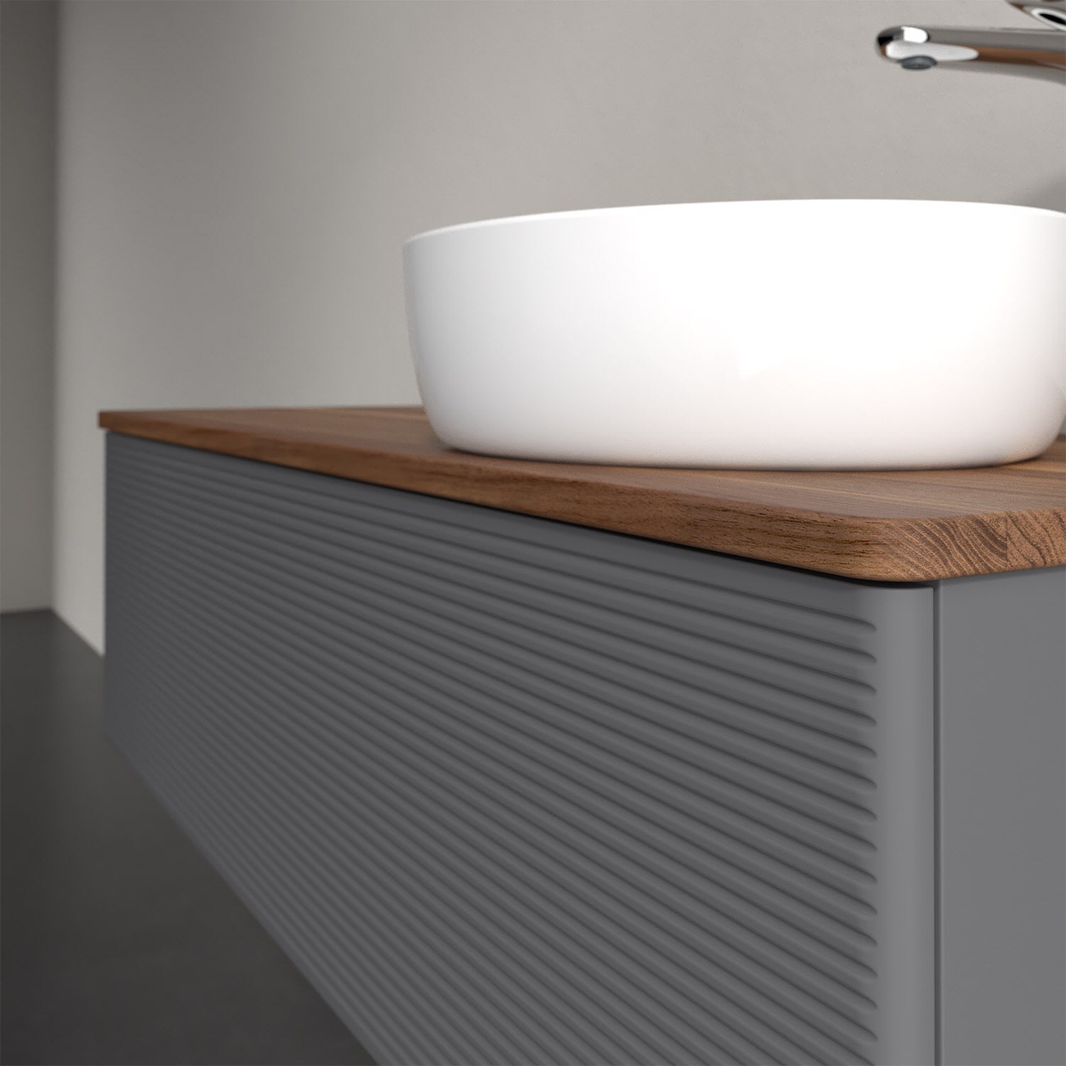 Der wandhängende Antao Waschtischunterschrank von Villeroy & Boch bietet nicht nur jede Menge Stauraum – er ist dank seines naturinspirierten Designs mit seinen abgerundeten Kanten auch noch besonders stilvoll und schafft eine gemütliche Atmosphäre im Badezimmer. Auf der Waschtischplatte bietet sich seitlich des Waschtischs viel Platz für Zahnbürstenbecher oder Seifenspender. Ein extra hoher Auszug bietet viel Platz, um alles Notwendige zu verstauen und Ordnung zu halten. Öffnen lässt er sich durch leichten Druck auf die strukturierte Front. Dabei aktiviert sich übrigens die Auszugsbeleuchtung in angenehmem Warmweiß. Dank Vollauszug hat man immer alles im Blick und der Antirutschboden verhindert ein Umfallen oder Verrutschen der Gegenstände. Einfach clever! Für eine besonders leichte Pflege sorgt die mehrschichtig deckend lackierte Oberfläche. Bei der Ausführung in Massivholz wird dank des verarbeiteten Massivholzes jedes Möbel zu einem Unikat, das sich durch das lebendige Naturmaterial durch seine einzigartige Struktur und Maserung auszeichnet.