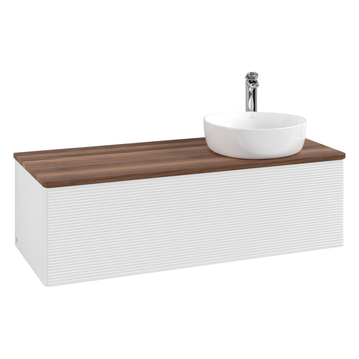 Villeroy & Boch Antao Waschbeckenunterschrank, 120 x 36 cm, 1 Auszug mit LED-Licht, Front mit Struktur, mit Hahnloch, für Waschtisch rechts