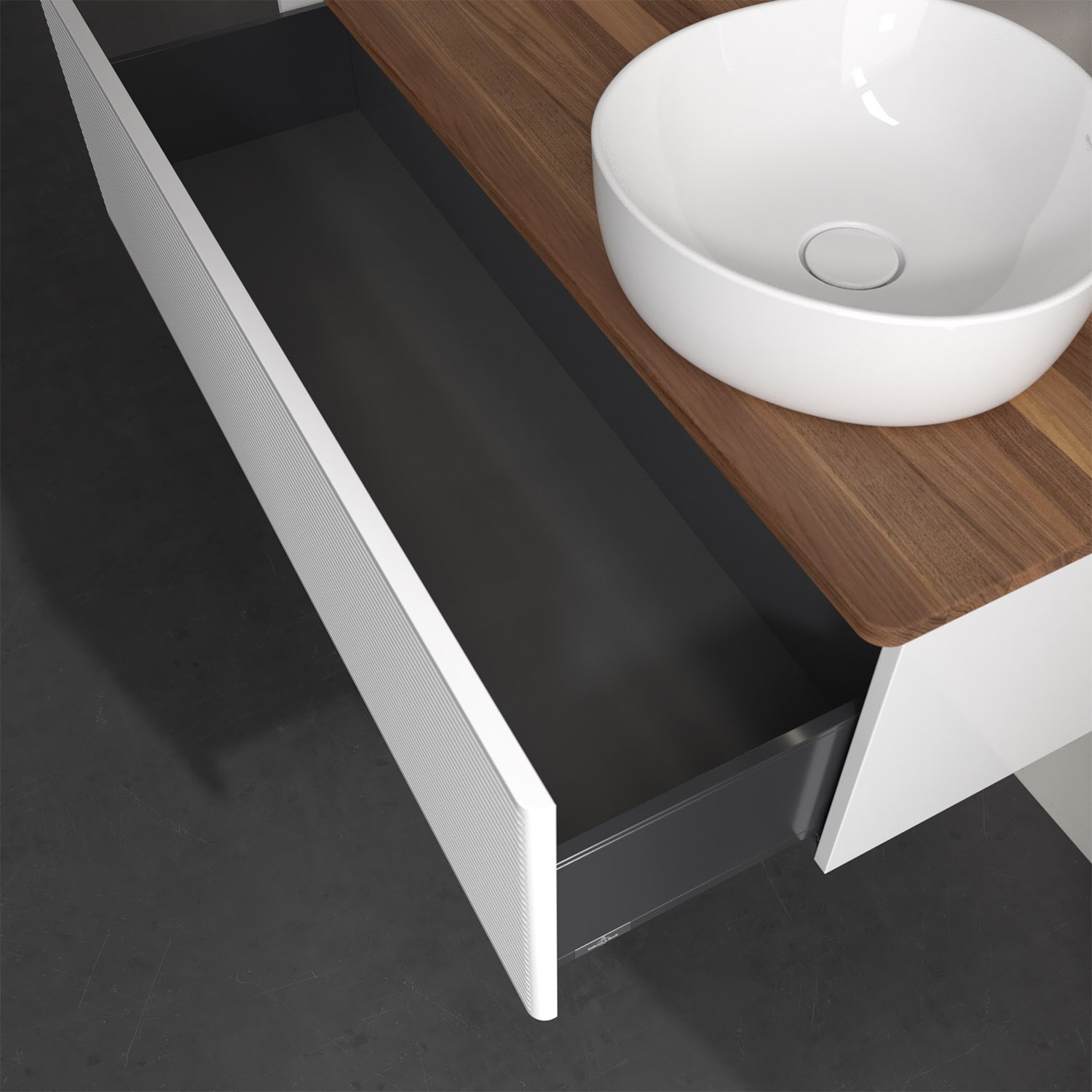 - kein Umfallen oder Verrutschen von Pflegeprodukten in den Schubladen dank rutschhemmendem Boden