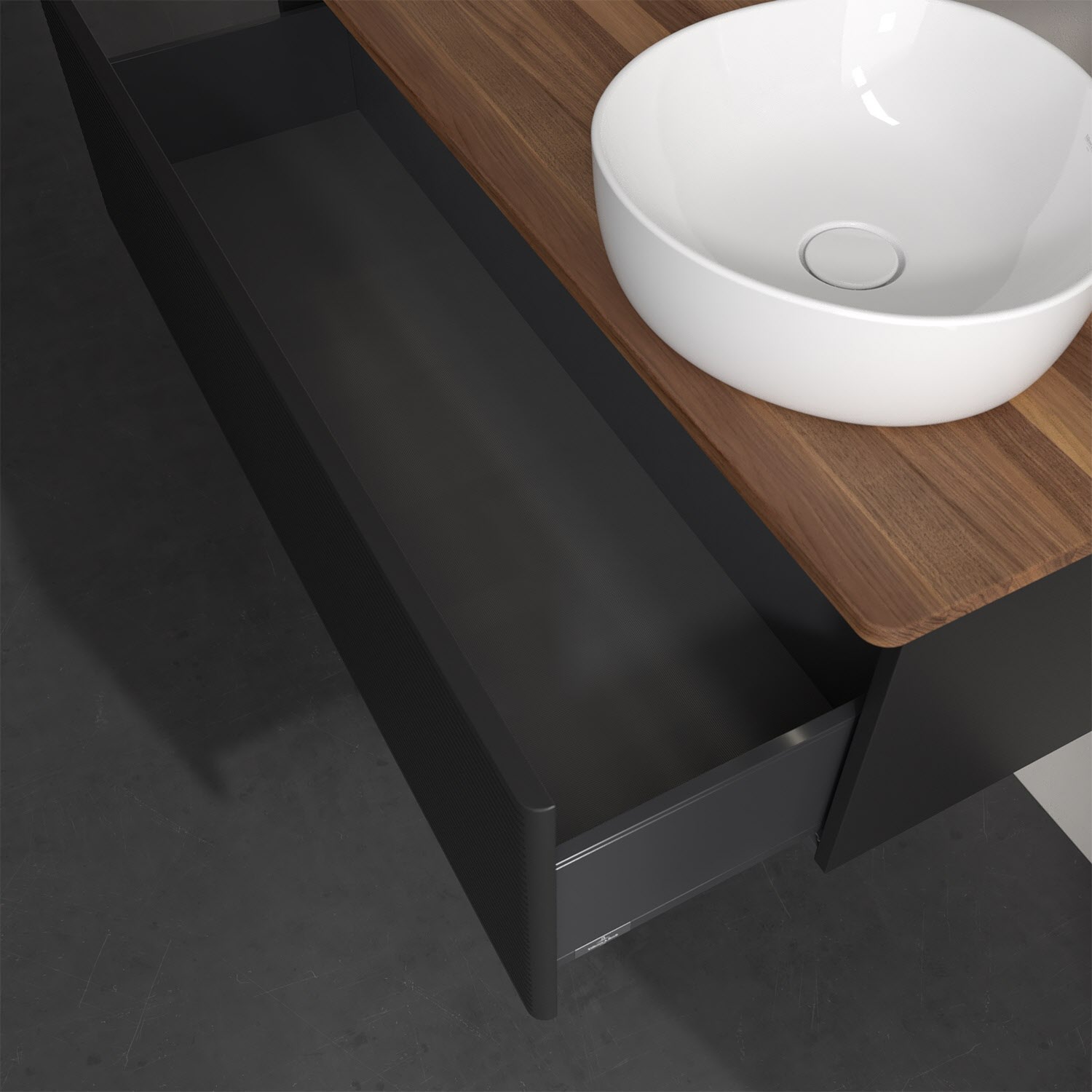 Villeroy & Boch Antao Waschbeckenunterschrank, 120 x 36 cm, 1 Auszug mit LED-Licht, Front mit Struktur, mit Hahnloch, für Waschtisch rechts