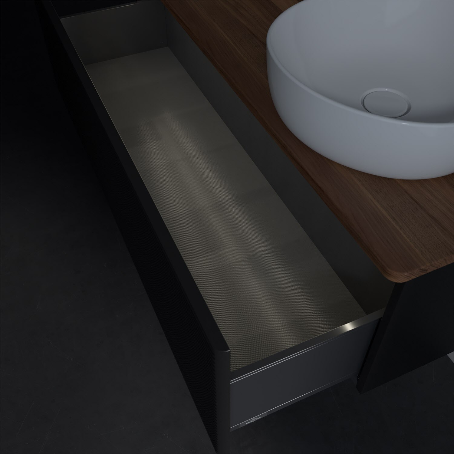 - kein Umfallen oder Verrutschen von Pflegeprodukten in den Schubladen dank rutschhemmendem Boden