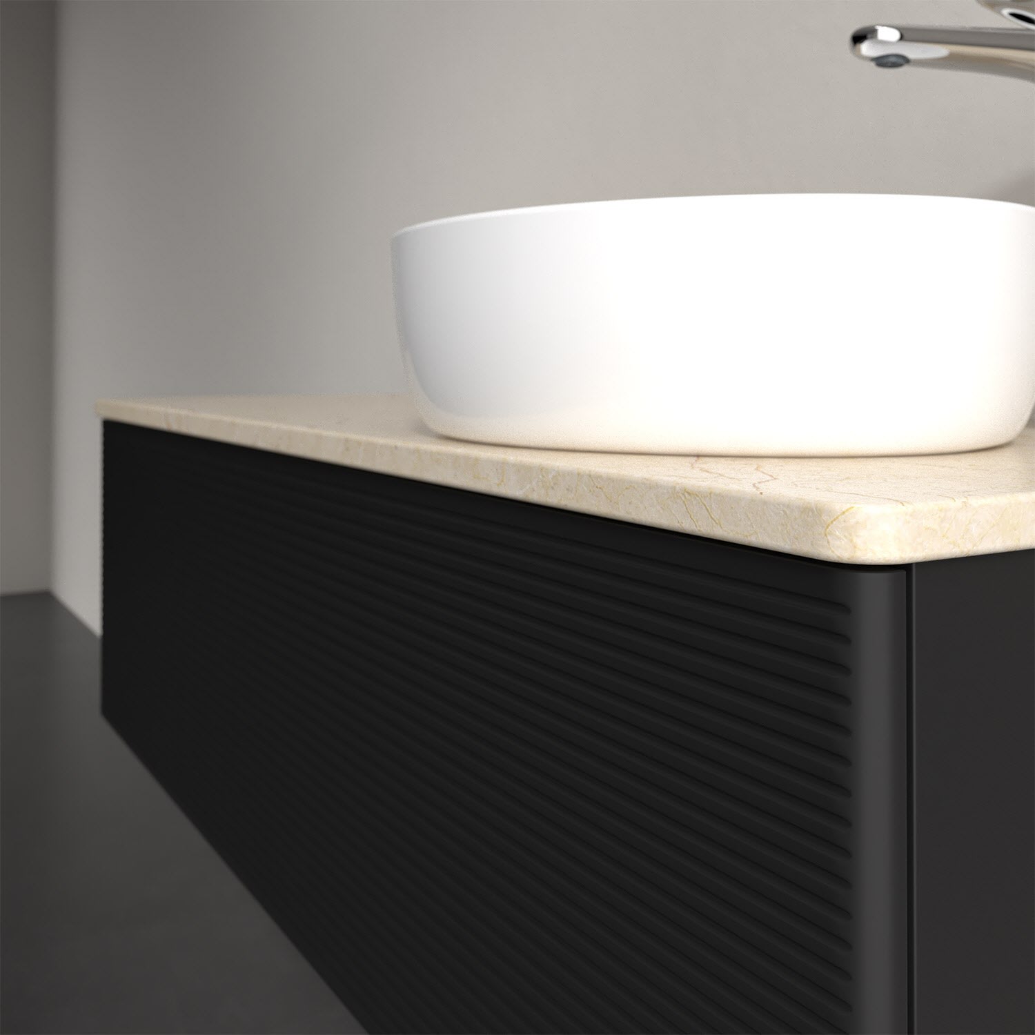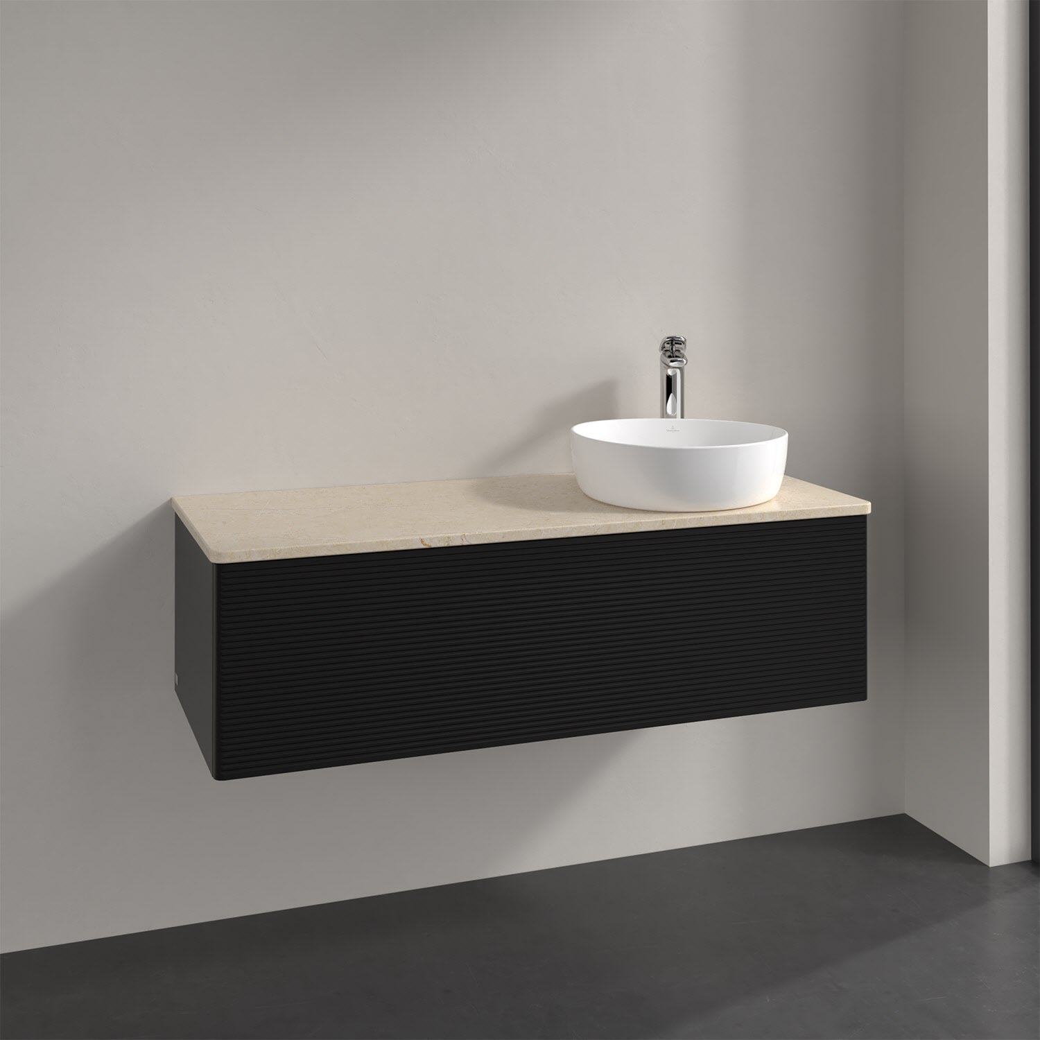 Villeroy & Boch Antao Waschbeckenunterschrank, 120 x 36 cm, 1 Auszug mit LED-Licht, Front mit Struktur, mit Hahnloch, für Waschtisch rechts