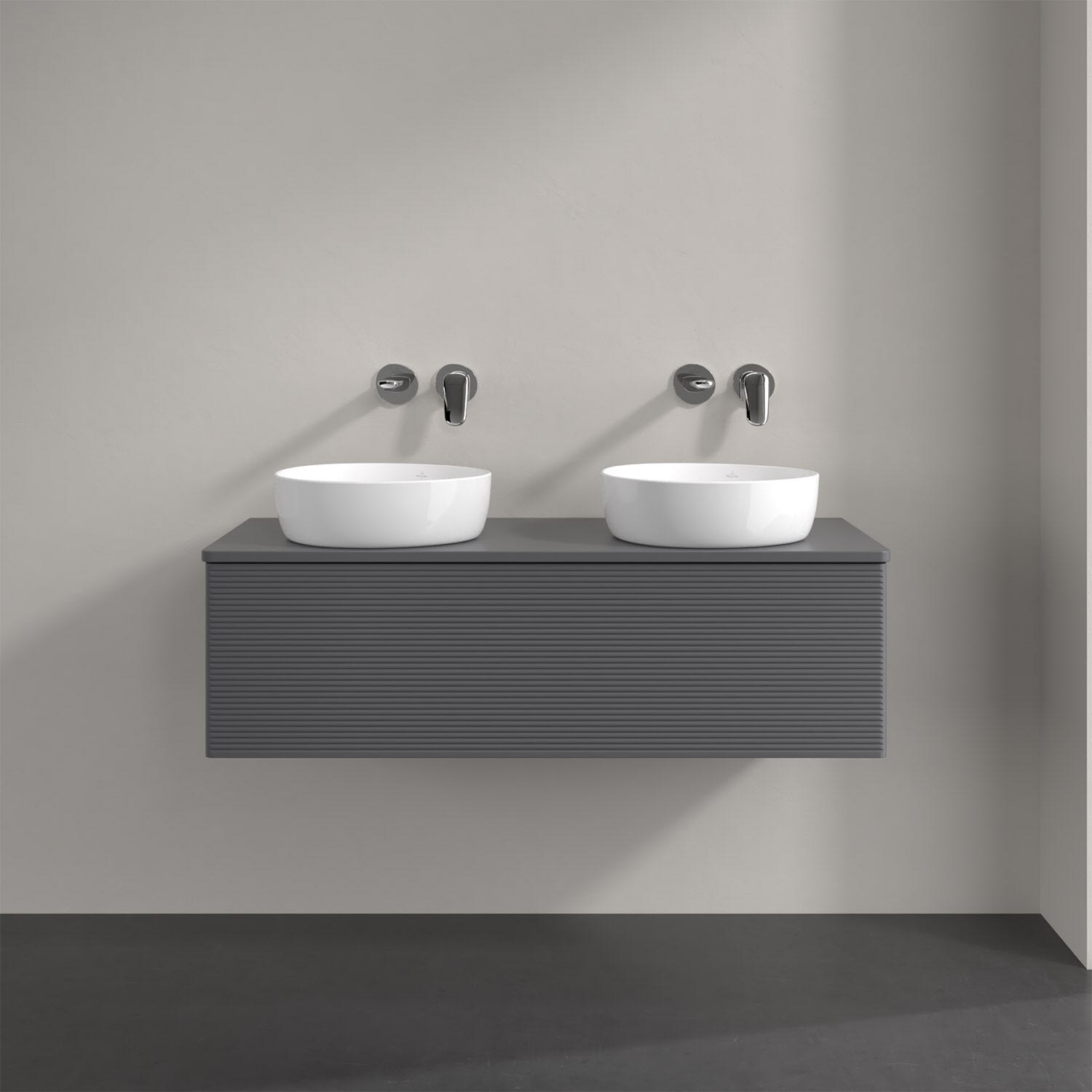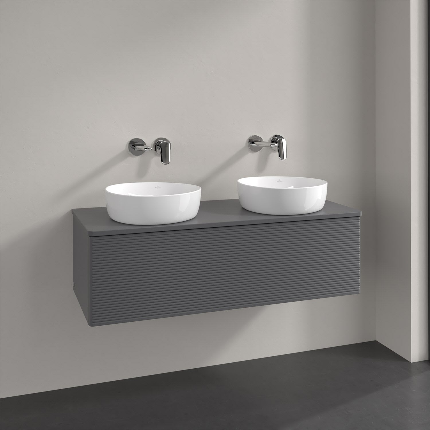 Der wandhängende Antao Waschtischunterschrank von Villeroy & Boch bietet nicht nur jede Menge Stauraum – er ist dank seines naturinspirierten Designs mit seinen abgerundeten Kanten auch noch besonders stilvoll und schafft eine gemütliche Atmosphäre im Badezimmer. Kombiniert mit zwei passenden Aufsatzwaschtischen also die ideale Wahl. Ein extra hoher Auszug bietet viel Platz, um alles Notwendige zu verstauen und Ordnung zu halten. Öffnen lässt er sich durch leichten Druck auf die strukturierte Front. Dabei aktiviert sich übrigens die Auszugsbeleuchtung in angenehmem Warmweiß. Dank Vollauszug hat man immer alles im Blick und der Antirutschboden verhindert ein Umfallen oder Verrutschen der Gegenstände. Einfach clever! Für eine besonders leichte Pflege sorgt die mehrschichtig deckend lackierte Oberfläche.