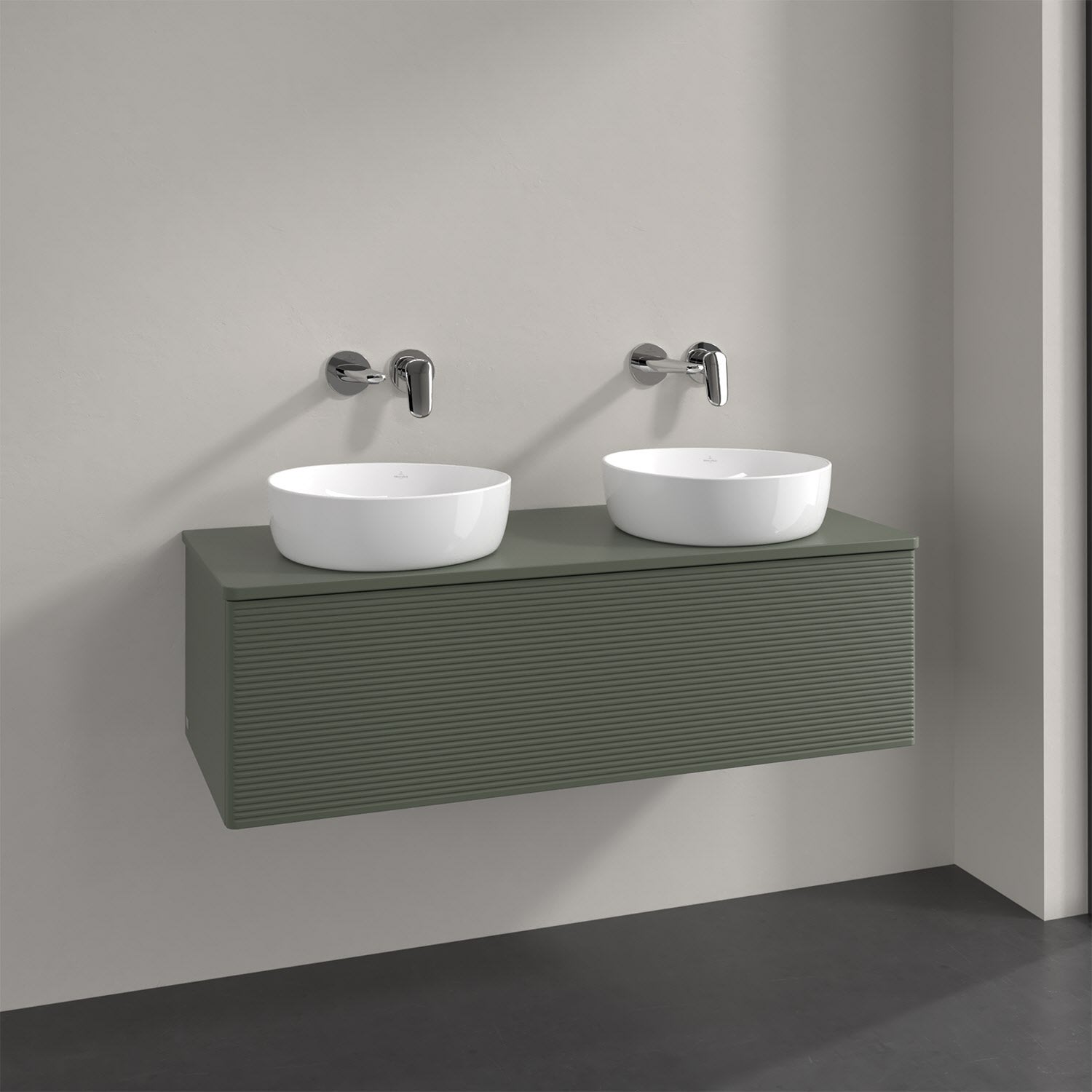 Villeroy & Boch Antao Waschbeckenunterschrank, 120 x 36 cm, 1 Auszug mit LED-Licht, Front mit Struktur, mit Hahnloch, für Waschtisch links und rechts