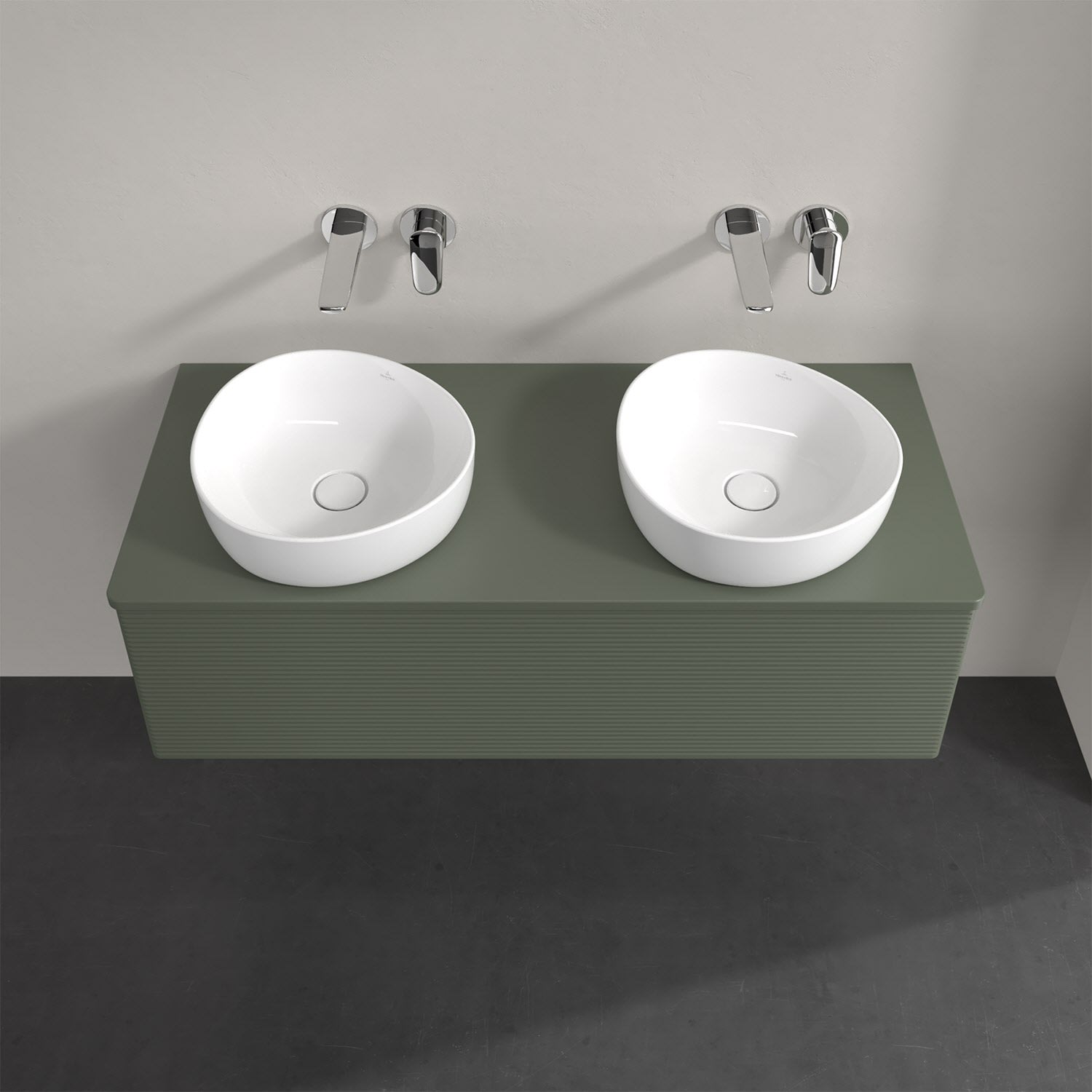 Der wandhängende Antao Waschtischunterschrank von Villeroy & Boch bietet nicht nur jede Menge Stauraum – er ist dank seines naturinspirierten Designs mit seinen abgerundeten Kanten auch noch besonders stilvoll und schafft eine gemütliche Atmosphäre im Badezimmer. Kombiniert mit zwei passenden Aufsatzwaschtischen also die ideale Wahl. Ein extra hoher Auszug bietet viel Platz, um alles Notwendige zu verstauen und Ordnung zu halten. Öffnen lässt er sich durch leichten Druck auf die strukturierte Front. Dabei aktiviert sich übrigens die Auszugsbeleuchtung in angenehmem Warmweiß. Dank Vollauszug hat man immer alles im Blick und der Antirutschboden verhindert ein Umfallen oder Verrutschen der Gegenstände. Einfach clever! Für eine besonders leichte Pflege sorgt die mehrschichtig deckend lackierte Oberfläche.