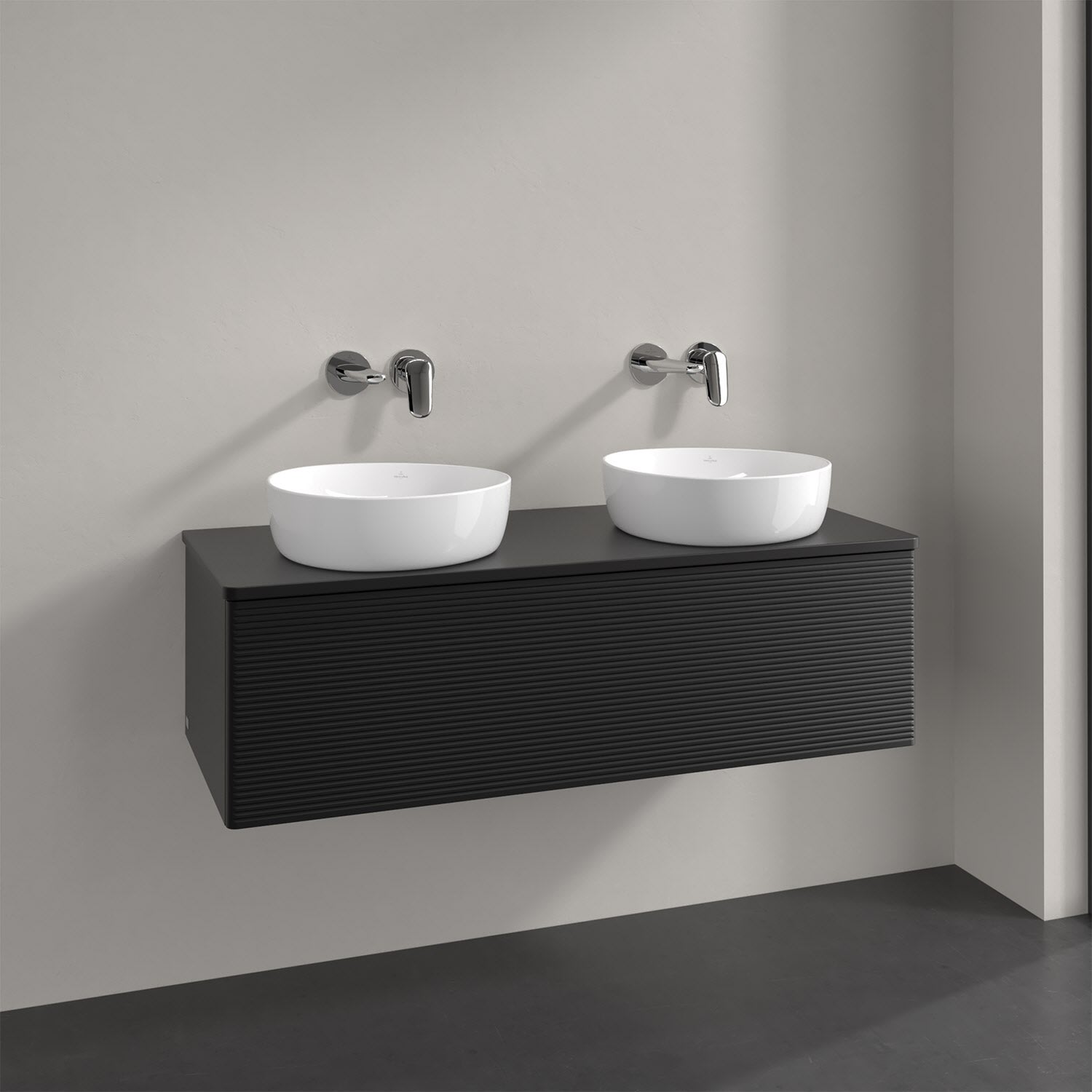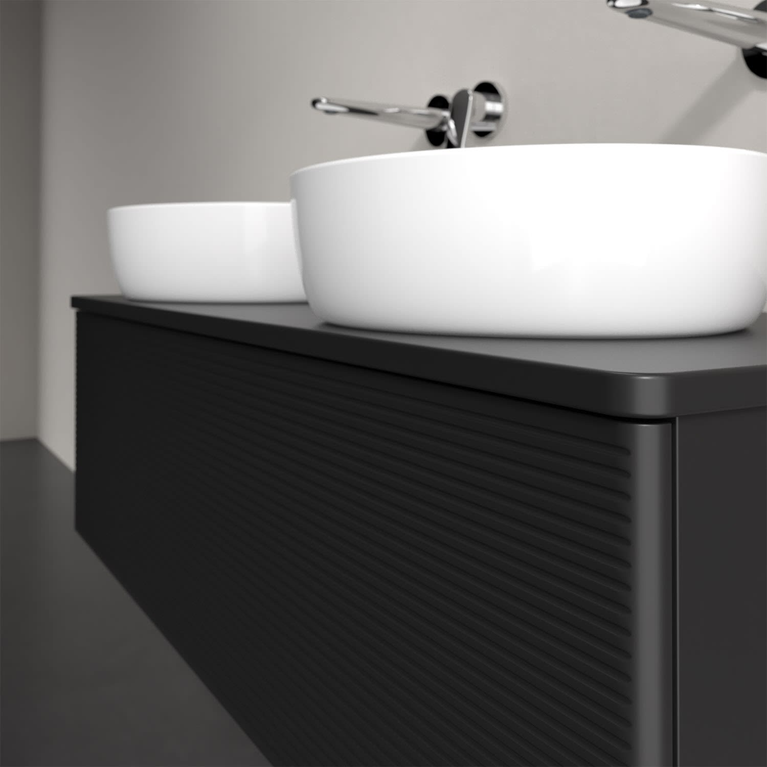 Der wandhängende Antao Waschtischunterschrank von Villeroy & Boch bietet nicht nur jede Menge Stauraum – er ist dank seines naturinspirierten Designs mit seinen abgerundeten Kanten auch noch besonders stilvoll und schafft eine gemütliche Atmosphäre im Badezimmer. Kombiniert mit zwei passenden Aufsatzwaschtischen also die ideale Wahl. Ein extra hoher Auszug bietet viel Platz, um alles Notwendige zu verstauen und Ordnung zu halten. Öffnen lässt er sich durch leichten Druck auf die strukturierte Front. Dabei aktiviert sich übrigens die Auszugsbeleuchtung in angenehmem Warmweiß. Dank Vollauszug hat man immer alles im Blick und der Antirutschboden verhindert ein Umfallen oder Verrutschen der Gegenstände. Einfach clever! Für eine besonders leichte Pflege sorgt die mehrschichtig deckend lackierte Oberfläche.