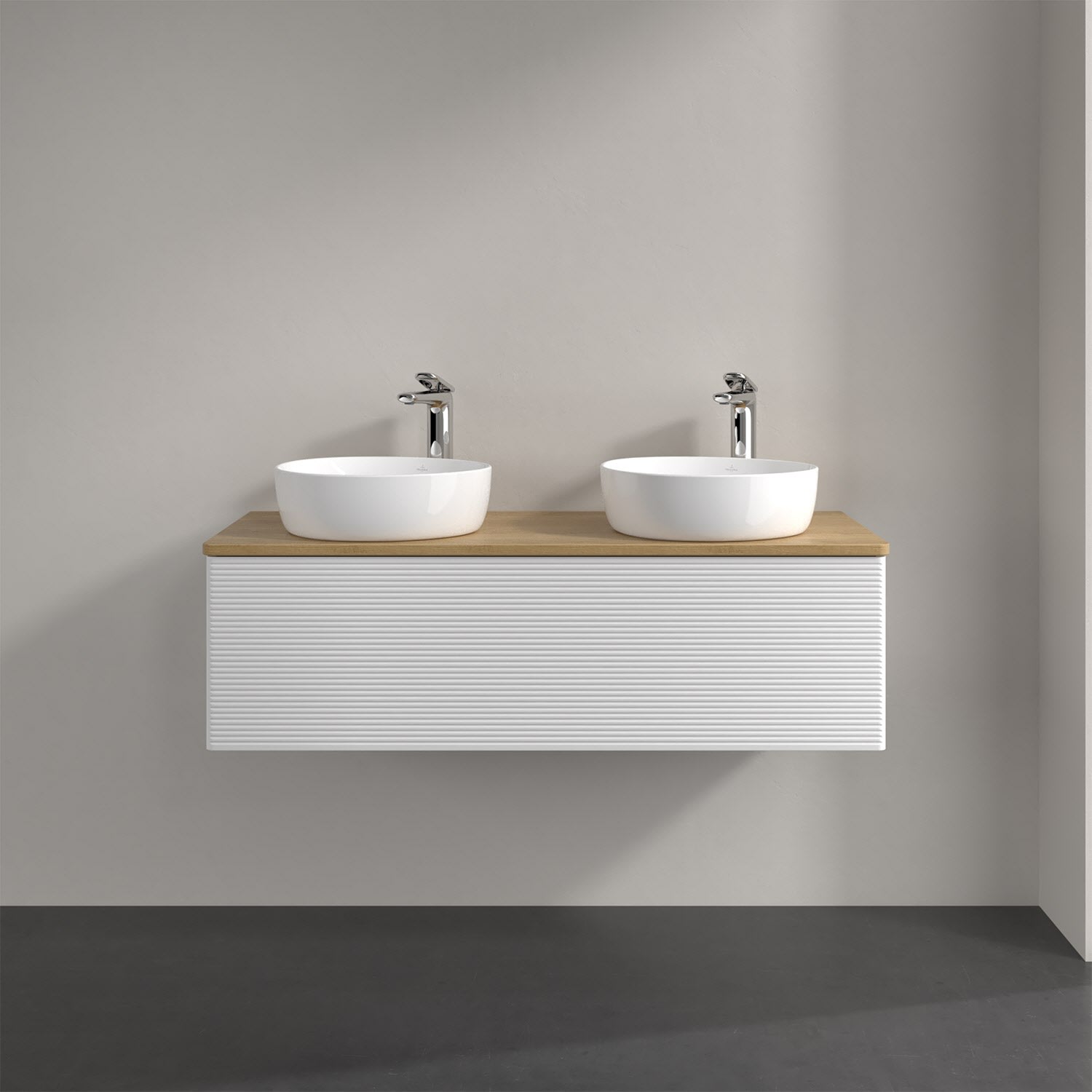 Der wandhängende Antao Waschtischunterschrank von Villeroy & Boch bietet nicht nur jede Menge Stauraum – er ist dank seines naturinspirierten Designs mit seinen abgerundeten Kanten auch noch besonders stilvoll und schafft eine gemütliche Atmosphäre im Badezimmer. Kombiniert mit zwei passenden Aufsatzwaschtischen also die ideale Wahl. Ein extra hoher Auszug bietet viel Platz, um alles Notwendige zu verstauen und Ordnung zu halten. Öffnen lässt er sich durch leichten Druck auf die strukturierte Front. Dabei aktiviert sich übrigens die Auszugsbeleuchtung in angenehmem Warmweiß. Dank Vollauszug hat man immer alles im Blick und der Antirutschboden verhindert ein Umfallen oder Verrutschen der Gegenstände. Einfach clever! Für eine besonders leichte Pflege sorgt die mehrschichtig deckend lackierte Oberfläche. Bei der Ausführung in Massivholz wird dank des verarbeiteten Massivholzes jedes Möbel zu einem Unikat, das sich durch das lebendige Naturmaterial durch seine einzigartige Struktur und Maserung auszeichnet.