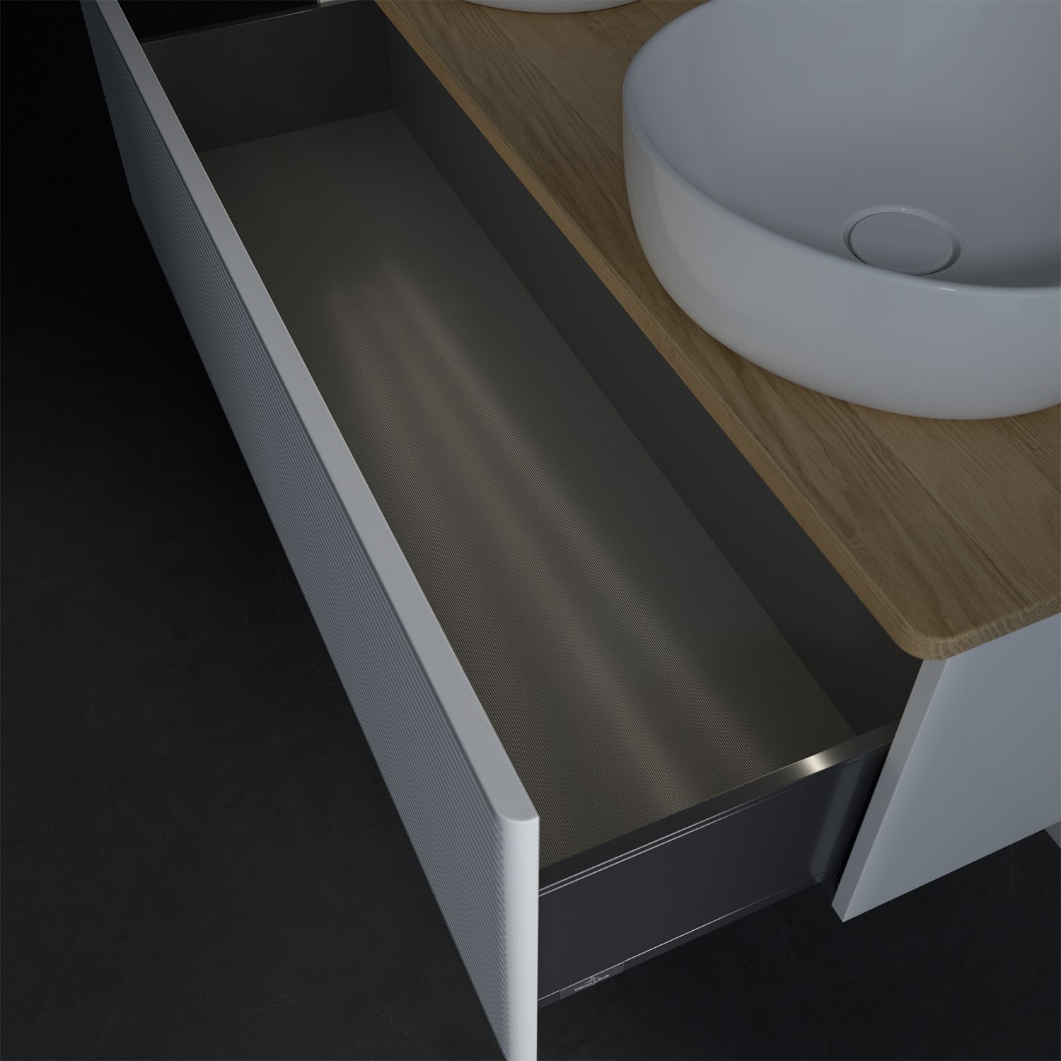 - kein Umfallen oder Verrutschen von Pflegeprodukten in den Schubladen dank rutschhemmendem Boden