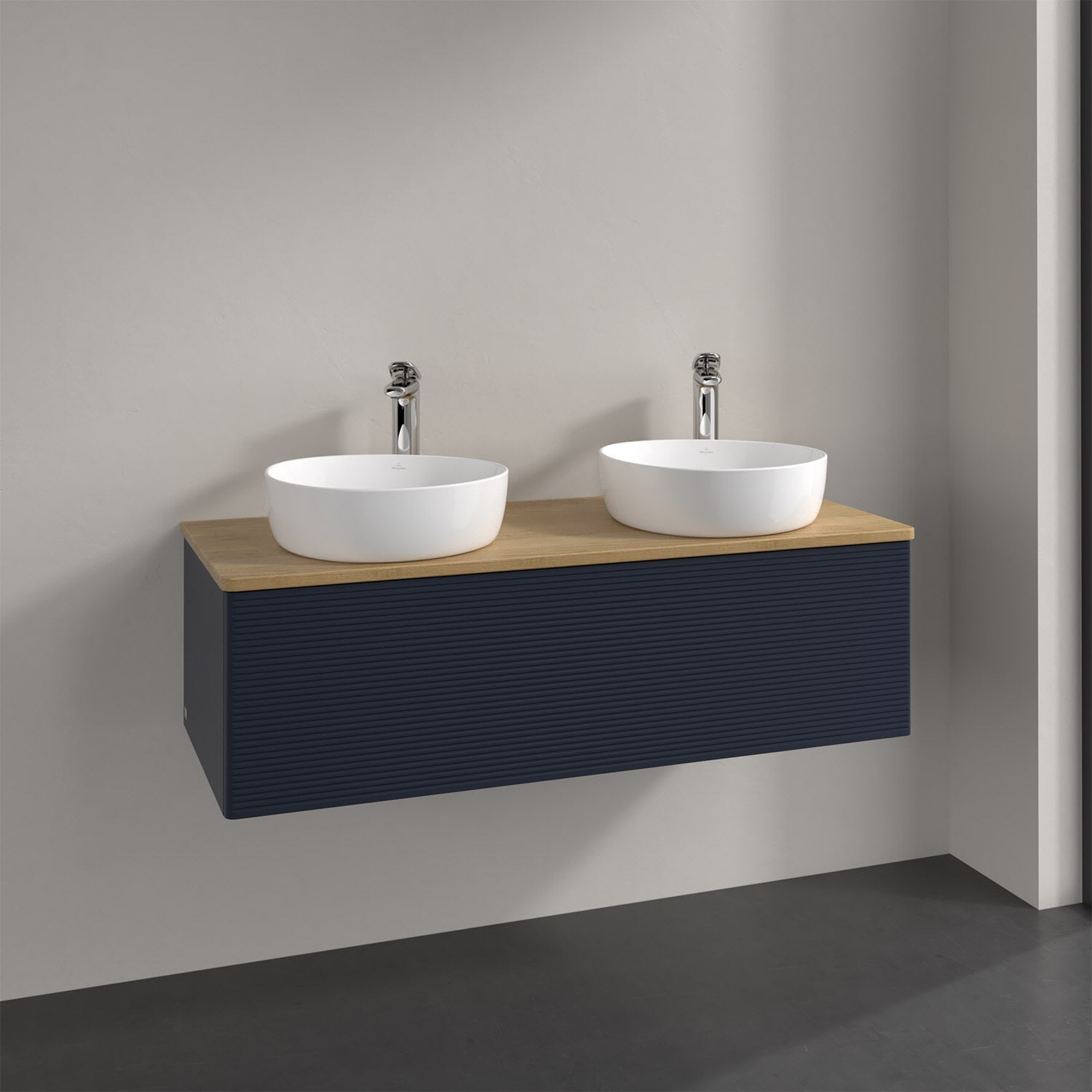 Der wandhängende Antao Waschtischunterschrank von Villeroy & Boch bietet nicht nur jede Menge Stauraum – er ist dank seines naturinspirierten Designs mit seinen abgerundeten Kanten auch noch besonders stilvoll und schafft eine gemütliche Atmosphäre im Badezimmer. Kombiniert mit zwei passenden Aufsatzwaschtischen also die ideale Wahl. Ein extra hoher Auszug bietet viel Platz, um alles Notwendige zu verstauen und Ordnung zu halten. Öffnen lässt er sich durch leichten Druck auf die strukturierte Front. Dabei aktiviert sich übrigens die Auszugsbeleuchtung in angenehmem Warmweiß. Dank Vollauszug hat man immer alles im Blick und der Antirutschboden verhindert ein Umfallen oder Verrutschen der Gegenstände. Einfach clever! Für eine besonders leichte Pflege sorgt die mehrschichtig deckend lackierte Oberfläche. Bei der Ausführung in Massivholz wird dank des verarbeiteten Massivholzes jedes Möbel zu einem Unikat, das sich durch das lebendige Naturmaterial durch seine einzigartige Struktur und Maserung auszeichnet.