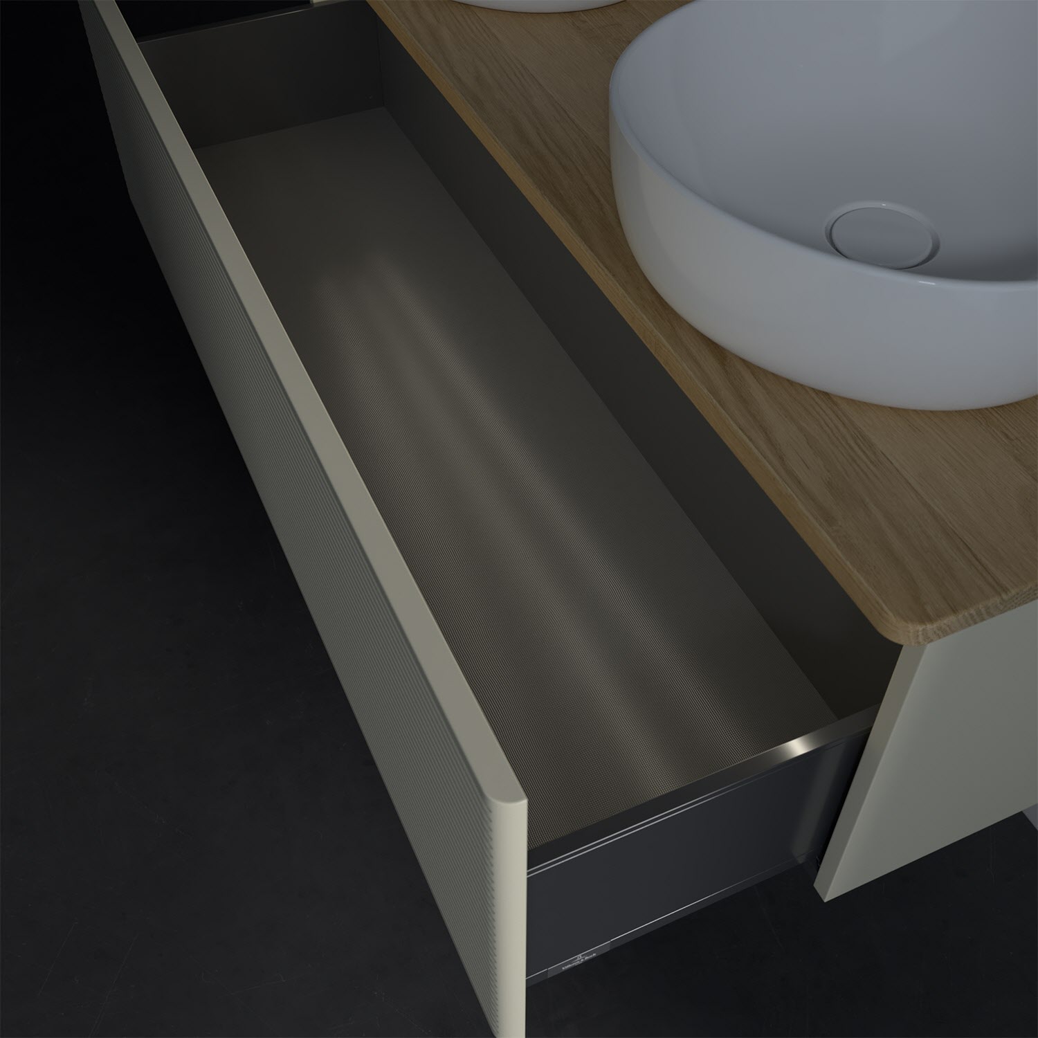 Villeroy & Boch Antao Waschbeckenunterschrank, 120 x 36 cm, 1 Auszug mit LED-Licht, Front mit Struktur, mit Hahnloch, für Waschtisch links und rechts