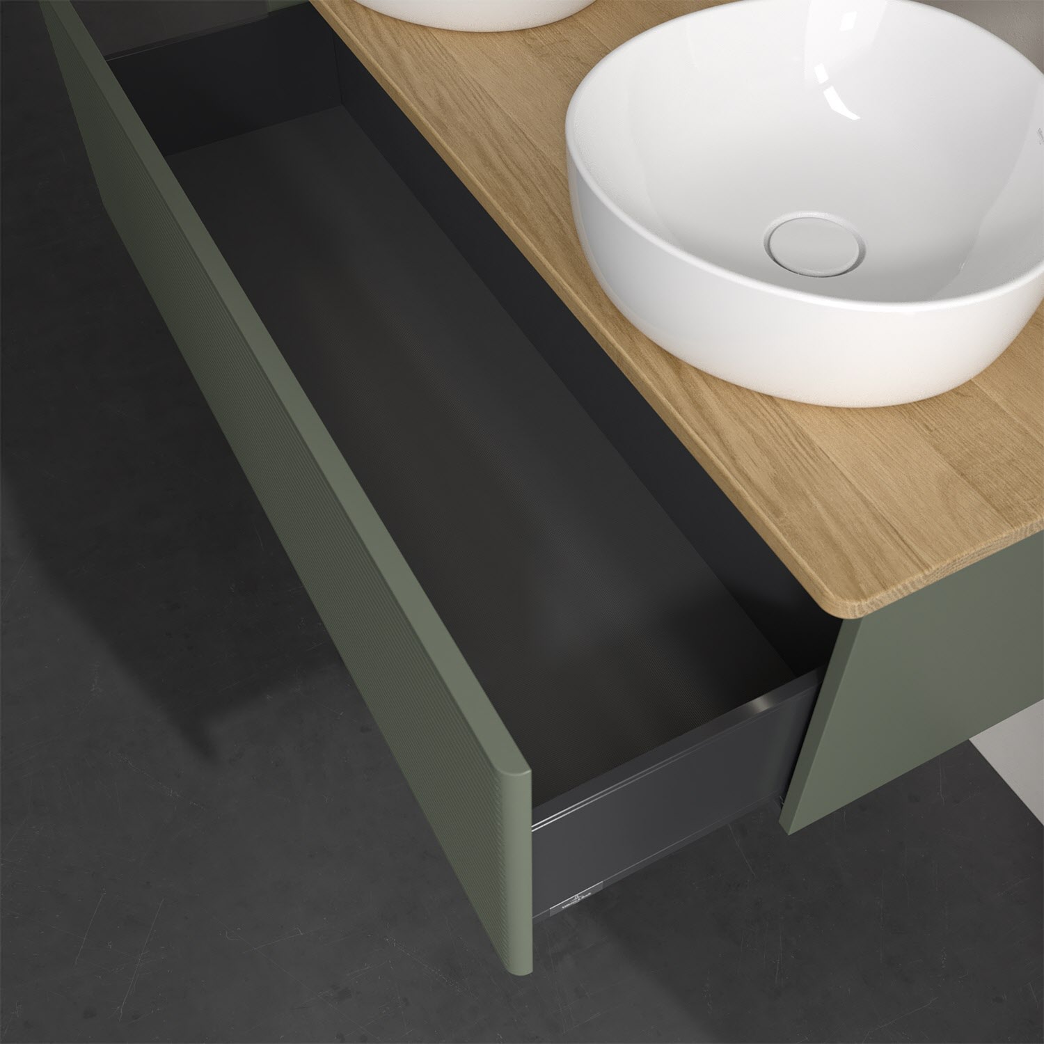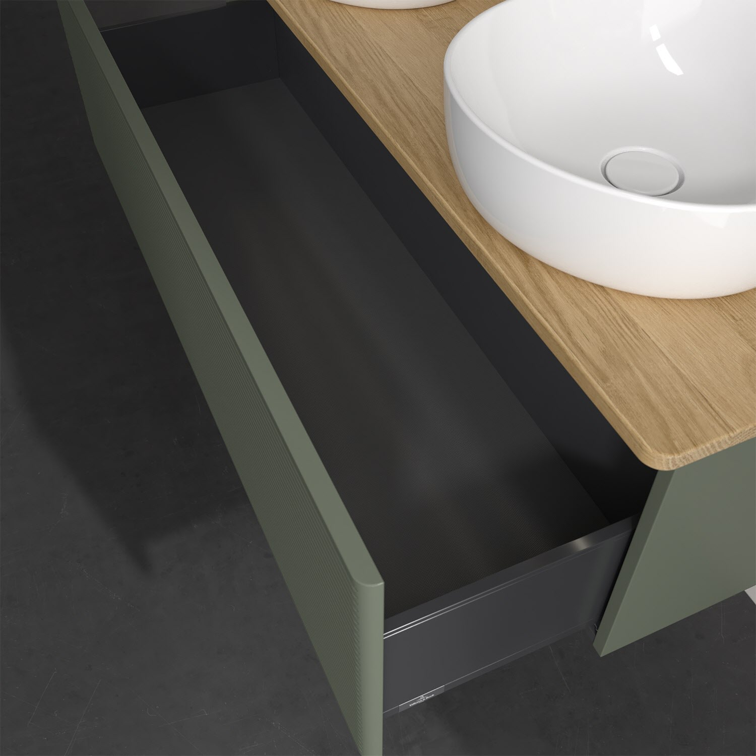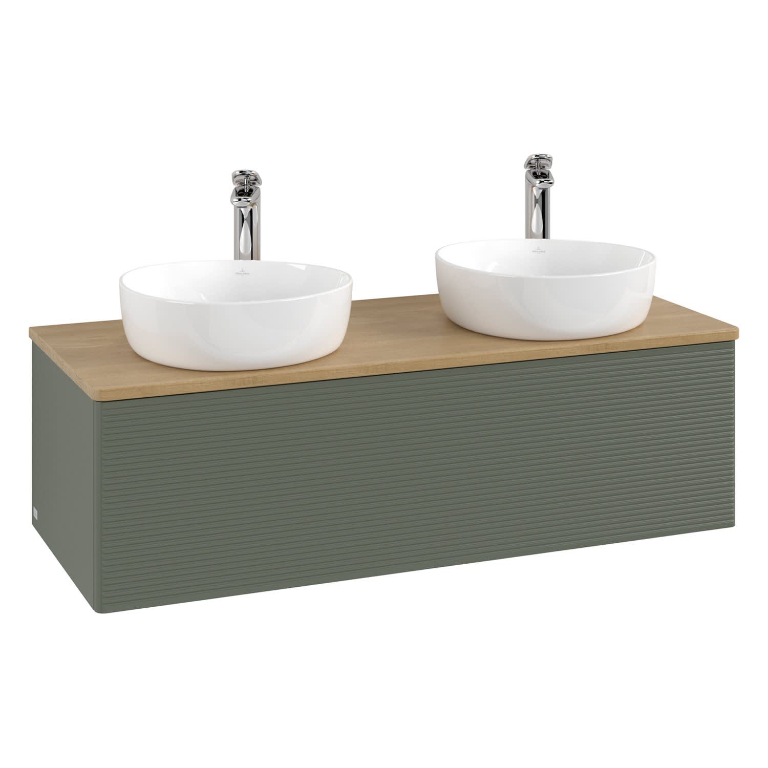 Der wandhängende Antao Waschtischunterschrank von Villeroy & Boch bietet nicht nur jede Menge Stauraum – er ist dank seines naturinspirierten Designs mit seinen abgerundeten Kanten auch noch besonders stilvoll und schafft eine gemütliche Atmosphäre im Badezimmer. Kombiniert mit zwei passenden Aufsatzwaschtischen also die ideale Wahl. Ein extra hoher Auszug bietet viel Platz, um alles Notwendige zu verstauen und Ordnung zu halten. Öffnen lässt er sich durch leichten Druck auf die strukturierte Front. Dabei aktiviert sich übrigens die Auszugsbeleuchtung in angenehmem Warmweiß. Dank Vollauszug hat man immer alles im Blick und der Antirutschboden verhindert ein Umfallen oder Verrutschen der Gegenstände. Einfach clever! Für eine besonders leichte Pflege sorgt die mehrschichtig deckend lackierte Oberfläche. Bei der Ausführung in Massivholz wird dank des verarbeiteten Massivholzes jedes Möbel zu einem Unikat, das sich durch das lebendige Naturmaterial durch seine einzigartige Struktur und Maserung auszeichnet.