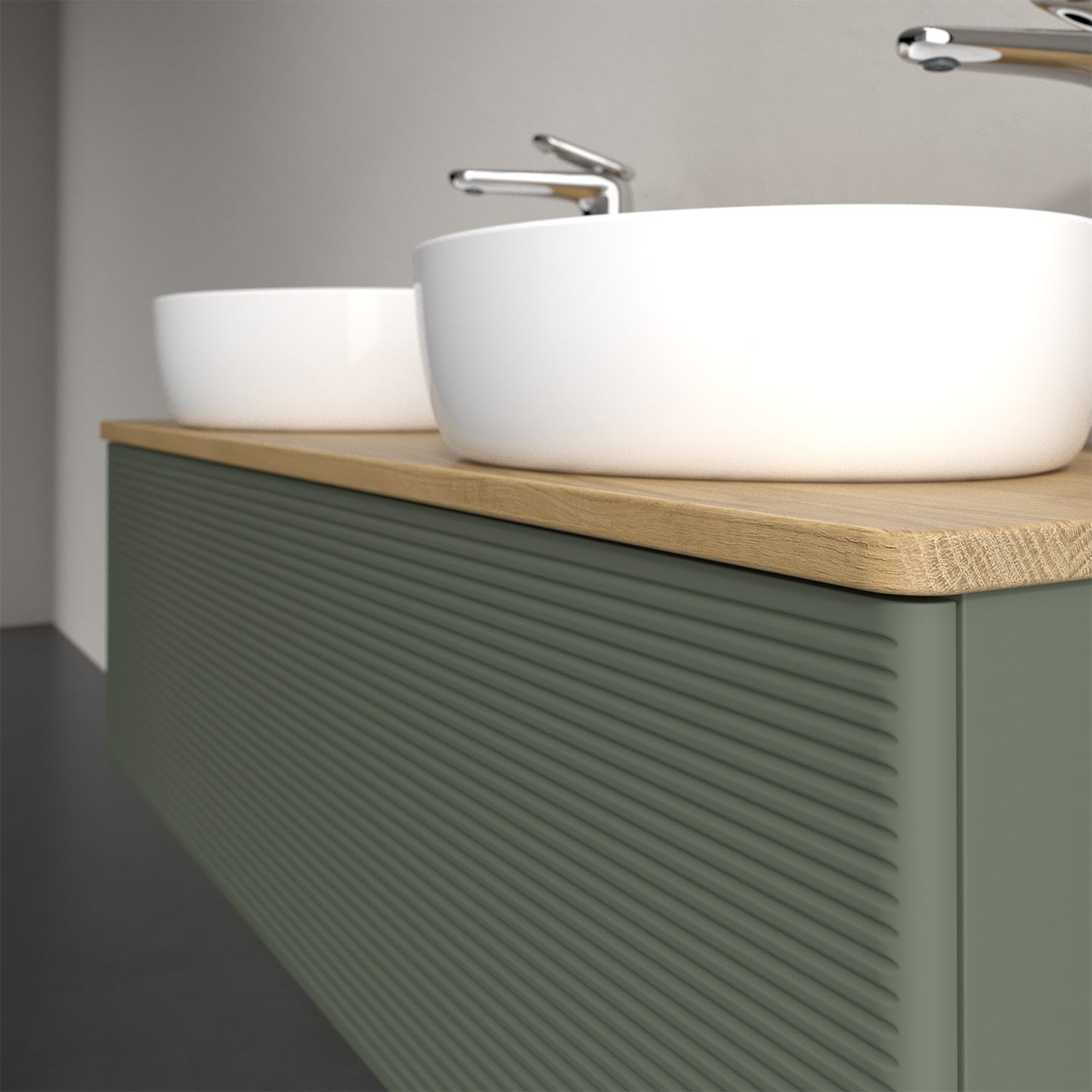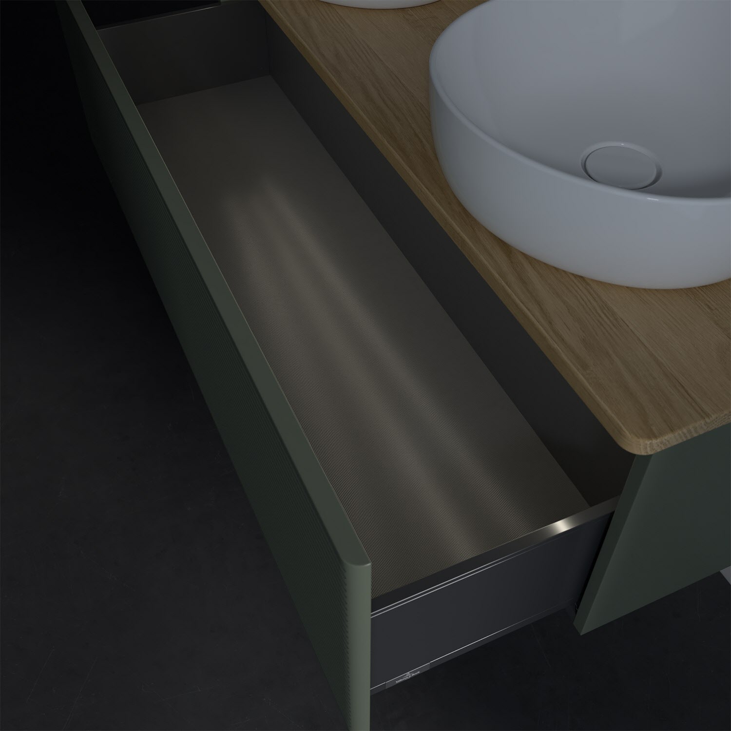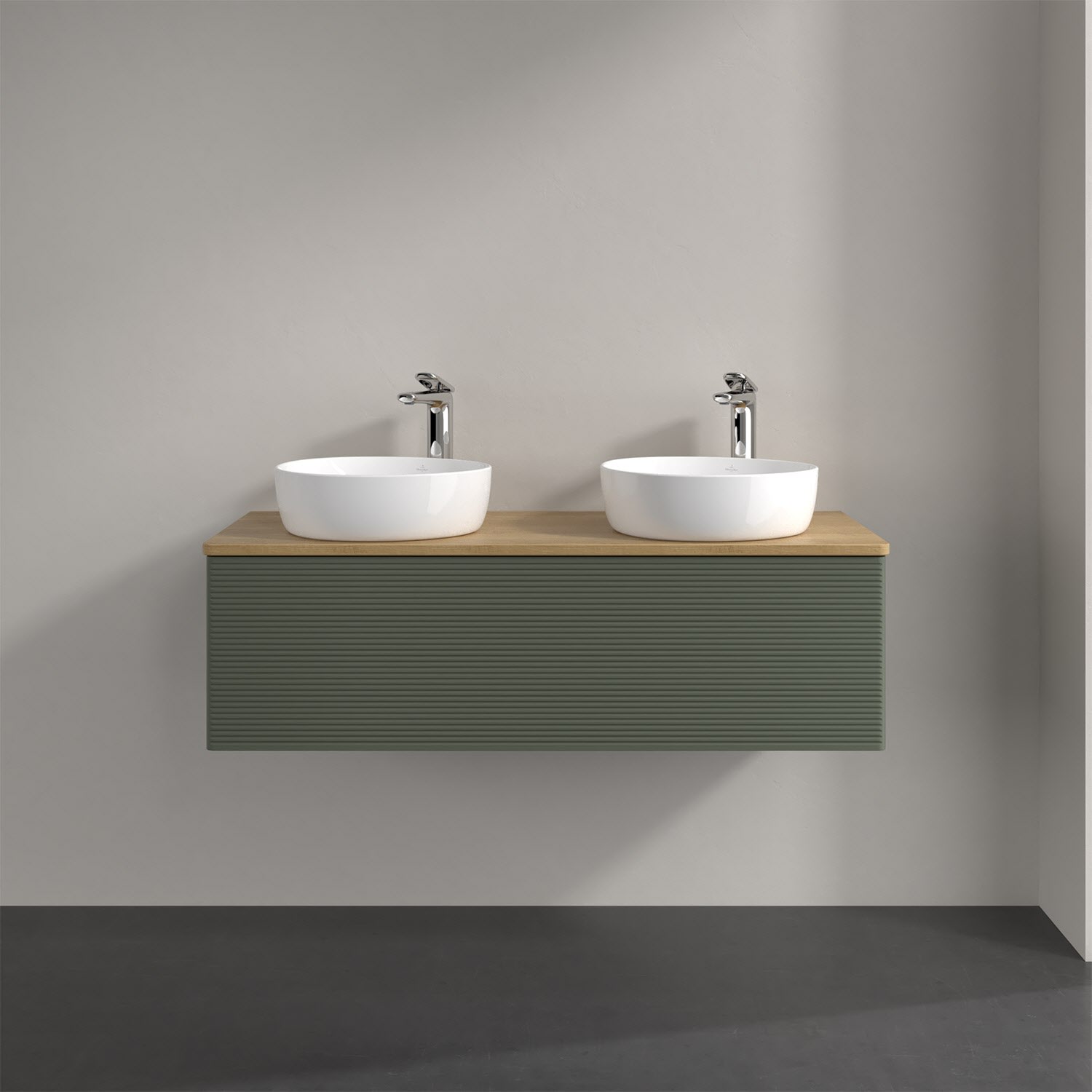 Der wandhängende Antao Waschtischunterschrank von Villeroy & Boch bietet nicht nur jede Menge Stauraum – er ist dank seines naturinspirierten Designs mit seinen abgerundeten Kanten auch noch besonders stilvoll und schafft eine gemütliche Atmosphäre im Badezimmer. Kombiniert mit zwei passenden Aufsatzwaschtischen also die ideale Wahl. Ein extra hoher Auszug bietet viel Platz, um alles Notwendige zu verstauen und Ordnung zu halten. Öffnen lässt er sich durch leichten Druck auf die strukturierte Front. Dabei aktiviert sich übrigens die Auszugsbeleuchtung in angenehmem Warmweiß. Dank Vollauszug hat man immer alles im Blick und der Antirutschboden verhindert ein Umfallen oder Verrutschen der Gegenstände. Einfach clever! Für eine besonders leichte Pflege sorgt die mehrschichtig deckend lackierte Oberfläche. Bei der Ausführung in Massivholz wird dank des verarbeiteten Massivholzes jedes Möbel zu einem Unikat, das sich durch das lebendige Naturmaterial durch seine einzigartige Struktur und Maserung auszeichnet.