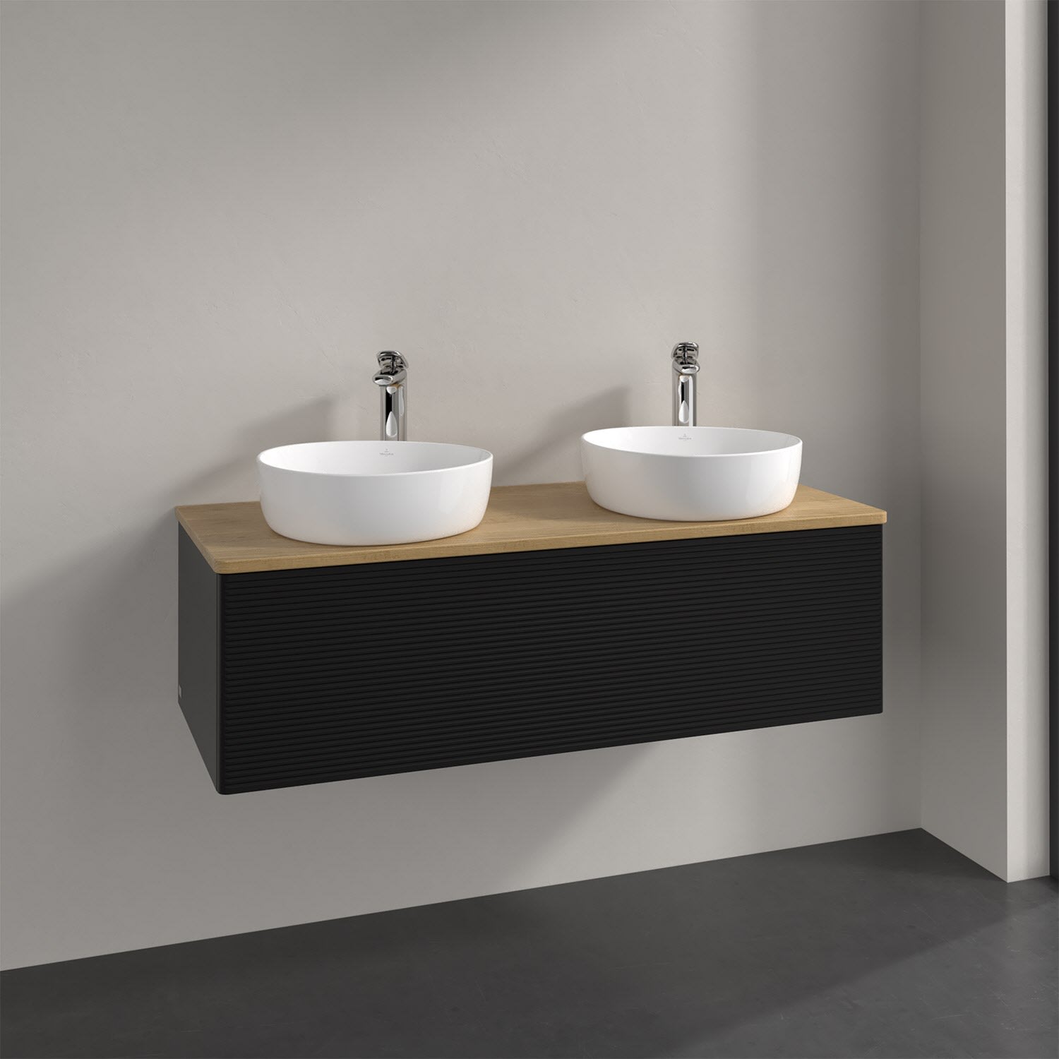 Villeroy & Boch Antao Waschbeckenunterschrank, 120 x 36 cm, 1 Auszug mit LED-Licht, Front mit Struktur, mit Hahnloch, für Waschtisch links und rechts