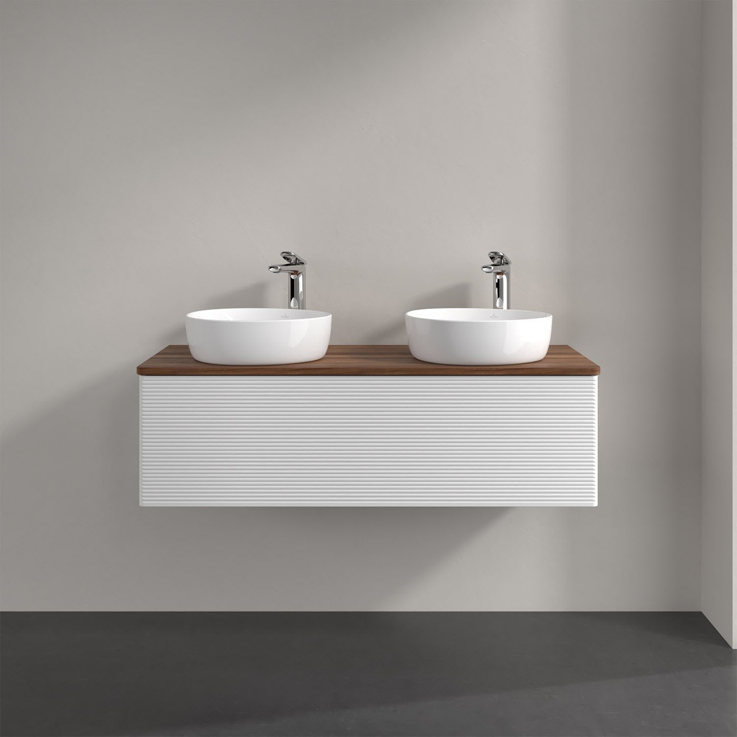 Der wandhängende Antao Waschtischunterschrank von Villeroy & Boch bietet nicht nur jede Menge Stauraum – er ist dank seines naturinspirierten Designs mit seinen abgerundeten Kanten auch noch besonders stilvoll und schafft eine gemütliche Atmosphäre im Badezimmer. Kombiniert mit zwei passenden Aufsatzwaschtischen also die ideale Wahl. Ein extra hoher Auszug bietet viel Platz, um alles Notwendige zu verstauen und Ordnung zu halten. Öffnen lässt er sich durch leichten Druck auf die strukturierte Front. Dabei aktiviert sich übrigens die Auszugsbeleuchtung in angenehmem Warmweiß. Dank Vollauszug hat man immer alles im Blick und der Antirutschboden verhindert ein Umfallen oder Verrutschen der Gegenstände. Einfach clever! Für eine besonders leichte Pflege sorgt die mehrschichtig deckend lackierte Oberfläche. Bei der Ausführung in Massivholz wird dank des verarbeiteten Massivholzes jedes Möbel zu einem Unikat, das sich durch das lebendige Naturmaterial durch seine einzigartige Struktur und Maserung auszeichnet.