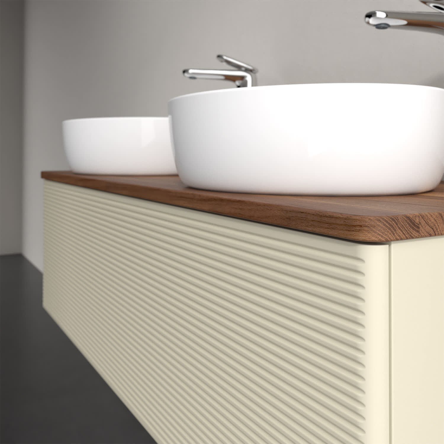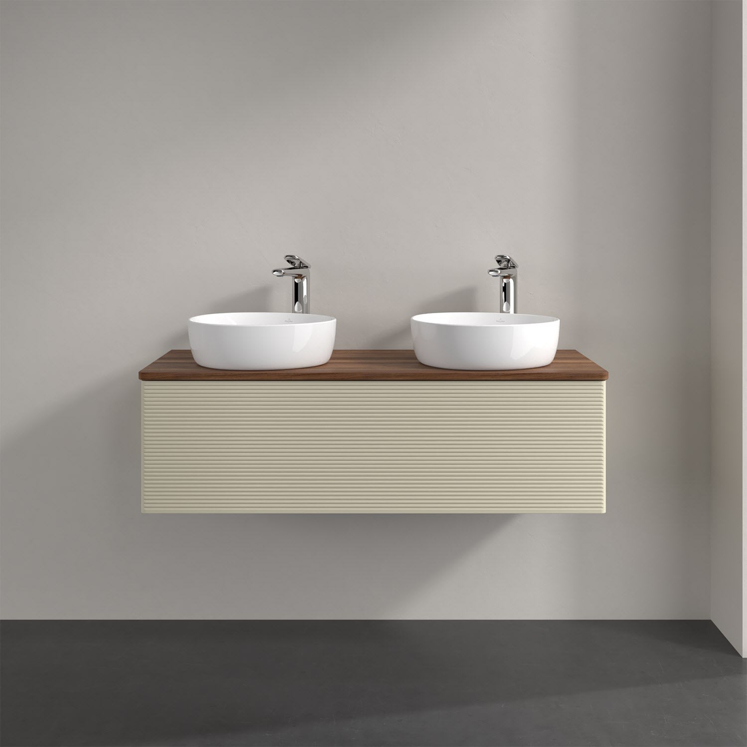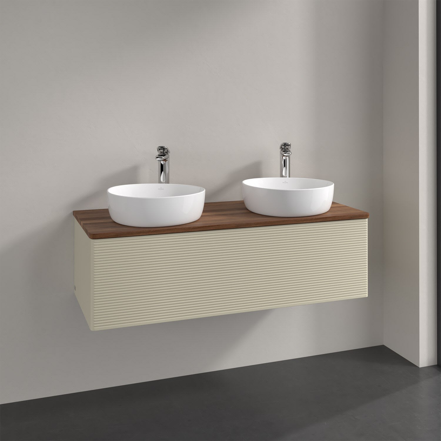 Der wandhängende Antao Waschtischunterschrank von Villeroy & Boch bietet nicht nur jede Menge Stauraum – er ist dank seines naturinspirierten Designs mit seinen abgerundeten Kanten auch noch besonders stilvoll und schafft eine gemütliche Atmosphäre im Badezimmer. Kombiniert mit zwei passenden Aufsatzwaschtischen also die ideale Wahl. Ein extra hoher Auszug bietet viel Platz, um alles Notwendige zu verstauen und Ordnung zu halten. Öffnen lässt er sich durch leichten Druck auf die strukturierte Front. Dabei aktiviert sich übrigens die Auszugsbeleuchtung in angenehmem Warmweiß. Dank Vollauszug hat man immer alles im Blick und der Antirutschboden verhindert ein Umfallen oder Verrutschen der Gegenstände. Einfach clever! Für eine besonders leichte Pflege sorgt die mehrschichtig deckend lackierte Oberfläche. Bei der Ausführung in Massivholz wird dank des verarbeiteten Massivholzes jedes Möbel zu einem Unikat, das sich durch das lebendige Naturmaterial durch seine einzigartige Struktur und Maserung auszeichnet.