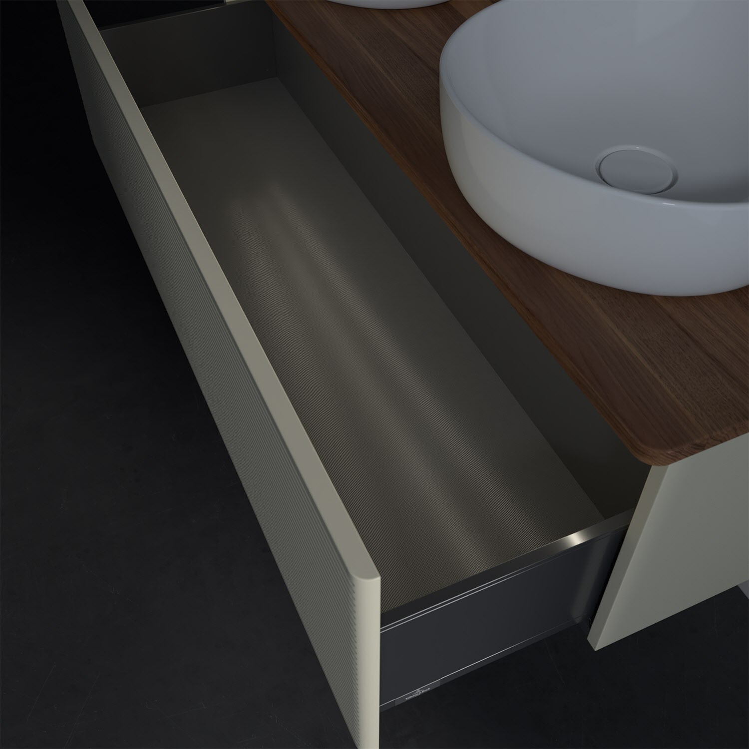 - kein Umfallen oder Verrutschen von Pflegeprodukten in den Schubladen dank rutschhemmendem Boden