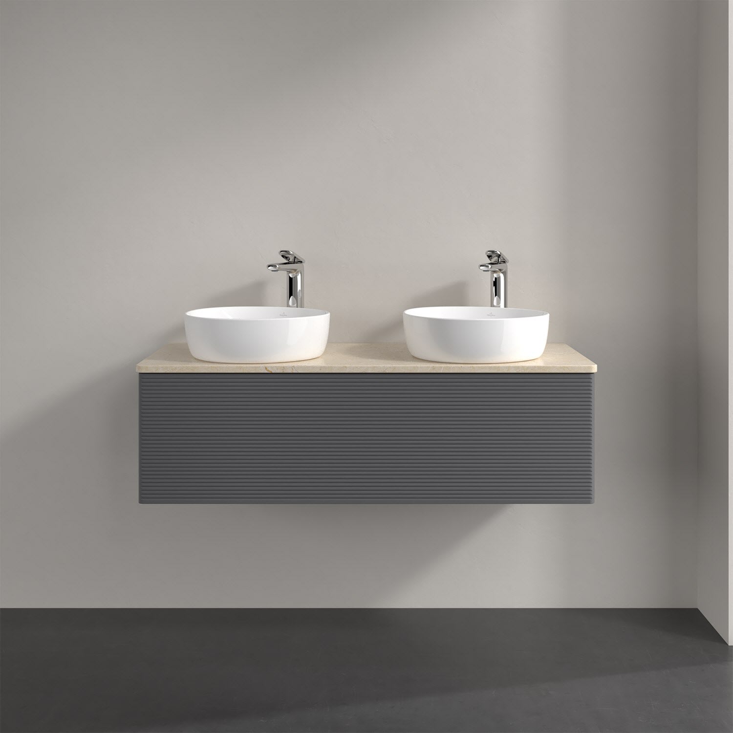 Villeroy & Boch Antao Waschbeckenunterschrank, 120 x 36 cm, 1 Auszug mit LED-Licht, Front mit Struktur, mit Hahnloch, für Waschtisch links und rechts