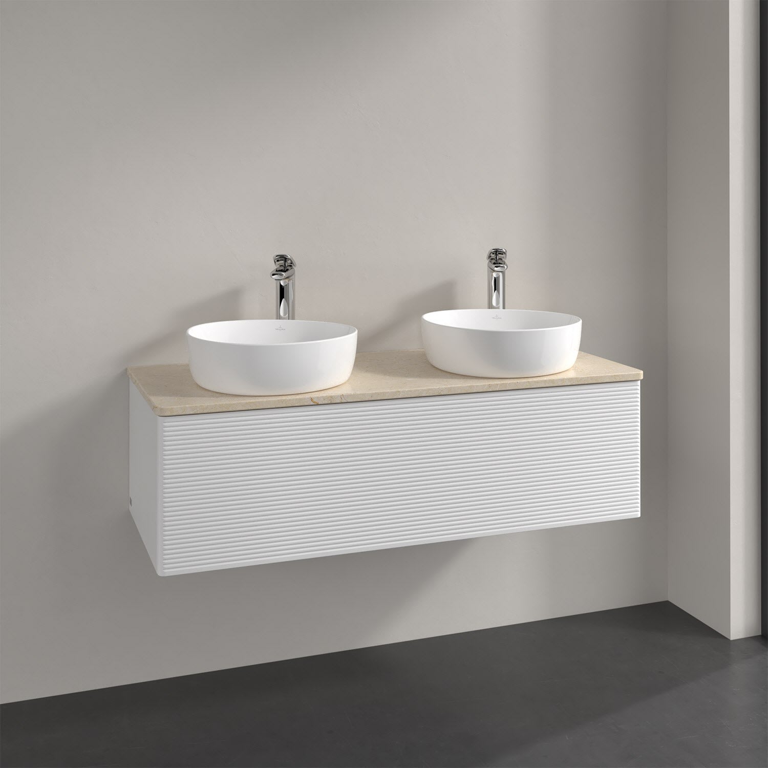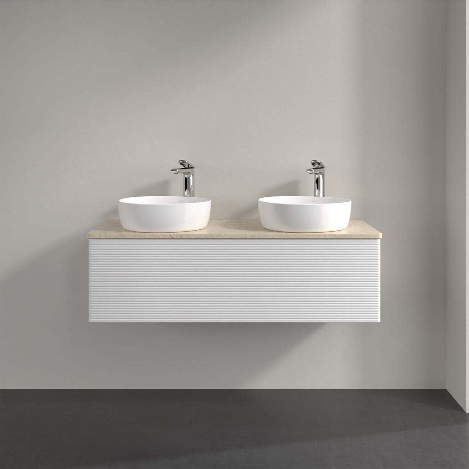 Villeroy & Boch Antao Waschbeckenunterschrank, 120 x 36 cm, 1 Auszug mit LED-Licht, Front mit Struktur, mit Hahnloch, für Waschtisch links und rechts