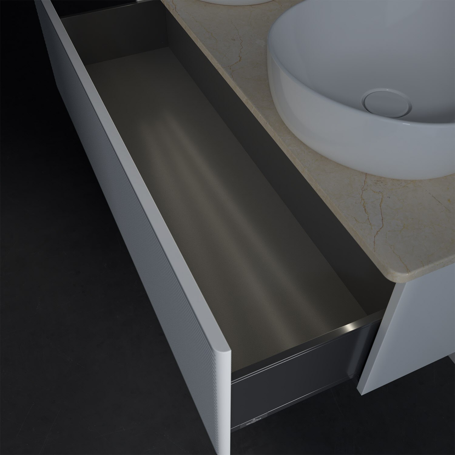 - kein Umfallen oder Verrutschen von Pflegeprodukten in den Schubladen dank rutschhemmendem Boden