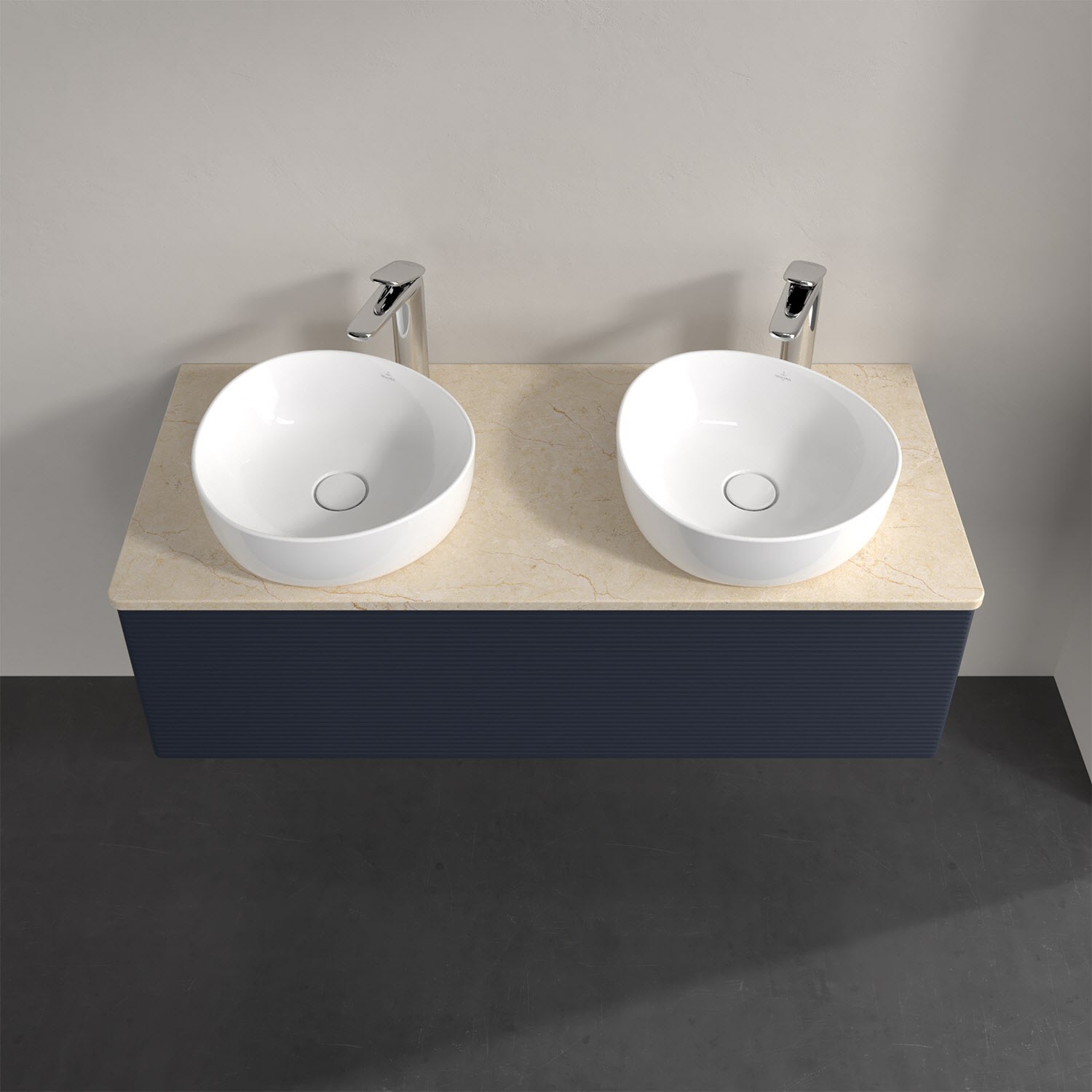 Der wandhängende Antao Waschtischunterschrank von Villeroy & Boch bietet nicht nur jede Menge Stauraum – er ist dank seines naturinspirierten Designs mit seinen abgerundeten Kanten auch noch besonders stilvoll und schafft eine gemütliche Atmosphäre im Badezimmer. Kombiniert mit zwei passenden Aufsatzwaschtischen also die ideale Wahl. Ein extra hoher Auszug bietet viel Platz, um alles Notwendige zu verstauen und Ordnung zu halten. Öffnen lässt er sich durch leichten Druck auf die strukturierte Front. Dabei aktiviert sich übrigens die Auszugsbeleuchtung in angenehmem Warmweiß. Dank Vollauszug hat man immer alles im Blick und der Antirutschboden verhindert ein Umfallen oder Verrutschen der Gegenstände. Einfach clever! Für eine besonders leichte Pflege sorgt die mehrschichtig deckend lackierte Oberfläche. Bei der Ausführung in Massivholz wird dank des verarbeiteten Massivholzes jedes Möbel zu einem Unikat, das sich durch das lebendige Naturmaterial durch seine einzigartige Struktur und Maserung auszeichnet.