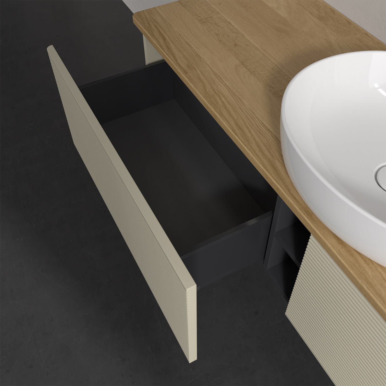 Villeroy & Boch Antao Waschbeckenunterschrank, 160 x 36 cm, 2 Auszüge mit LED-Licht, Front mit Struktur, mit Hahnloch, für Waschtisch mittig