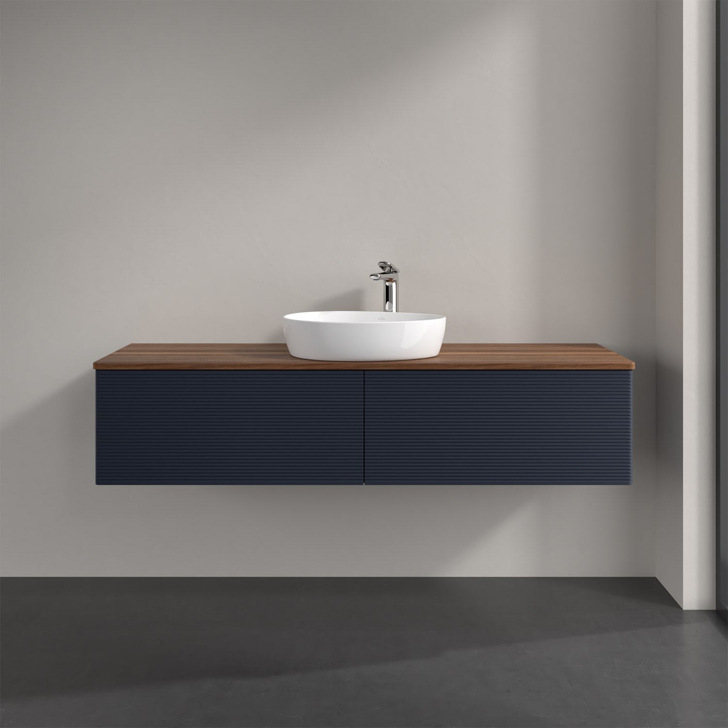 Villeroy & Boch Antao Waschbeckenunterschrank, 160 x 36 cm, 2 Auszüge mit LED-Licht, Front mit Struktur, mit Hahnloch, für Waschtisch mittig