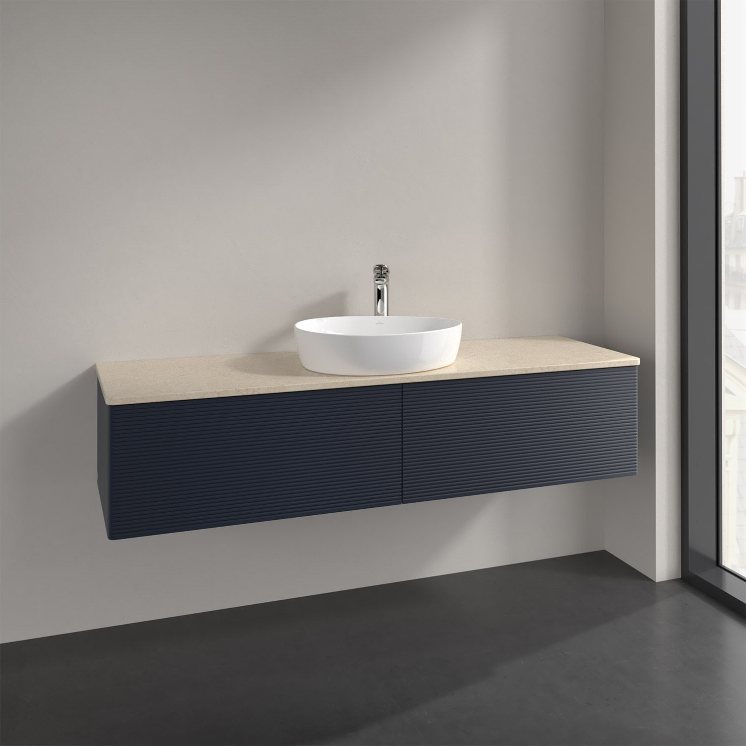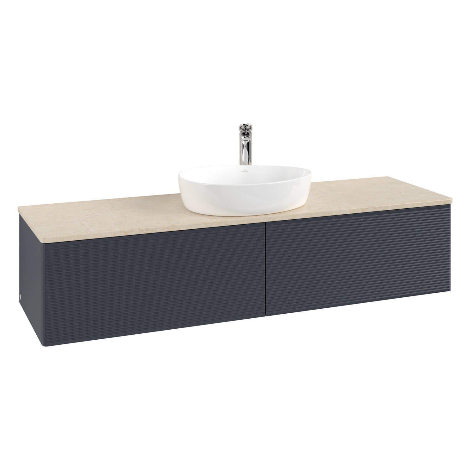 Villeroy & Boch Antao Waschbeckenunterschrank, 160 x 36 cm, 2 Auszüge mit LED-Licht, Front mit Struktur, mit Hahnloch, für Waschtisch mittig