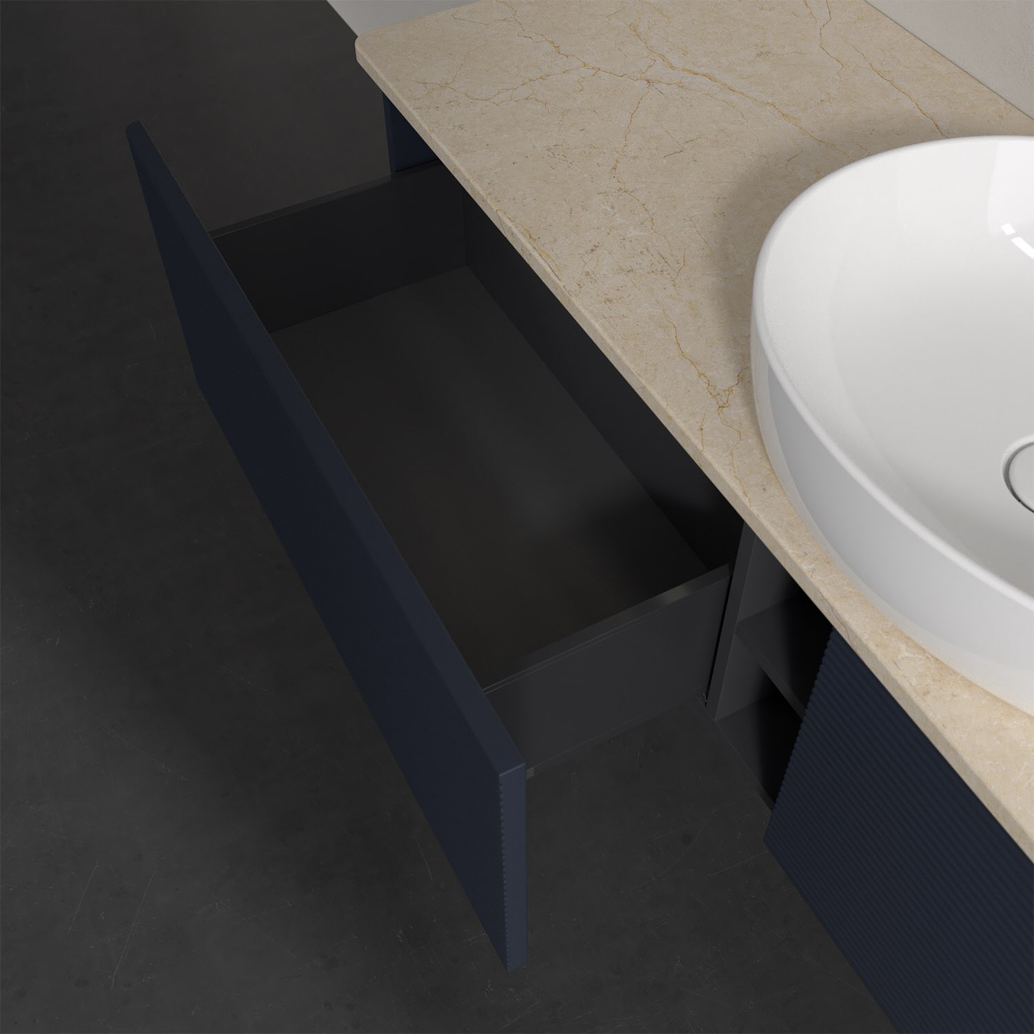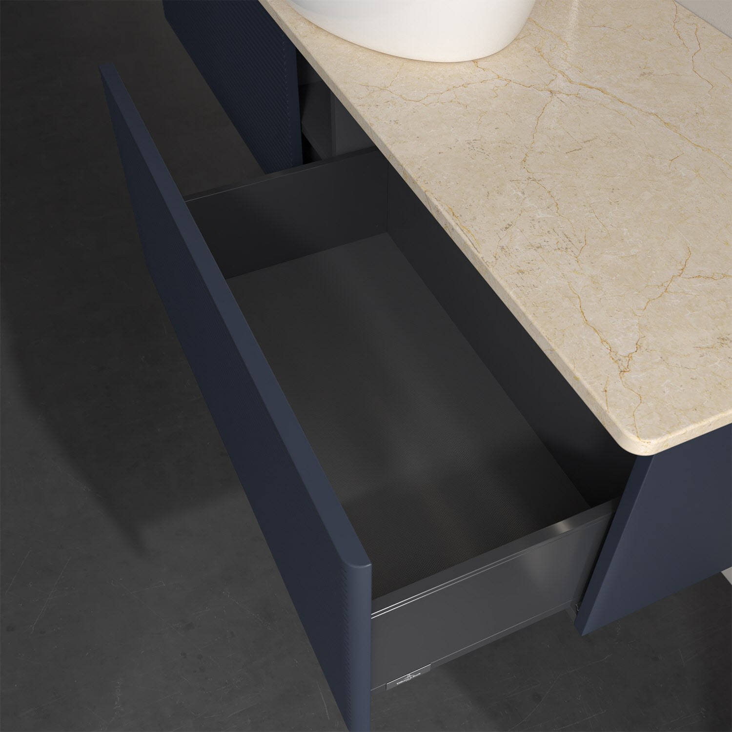 - kein Umfallen oder Verrutschen von Pflegeprodukten in den Schubladen dank rutschhemmendem Boden