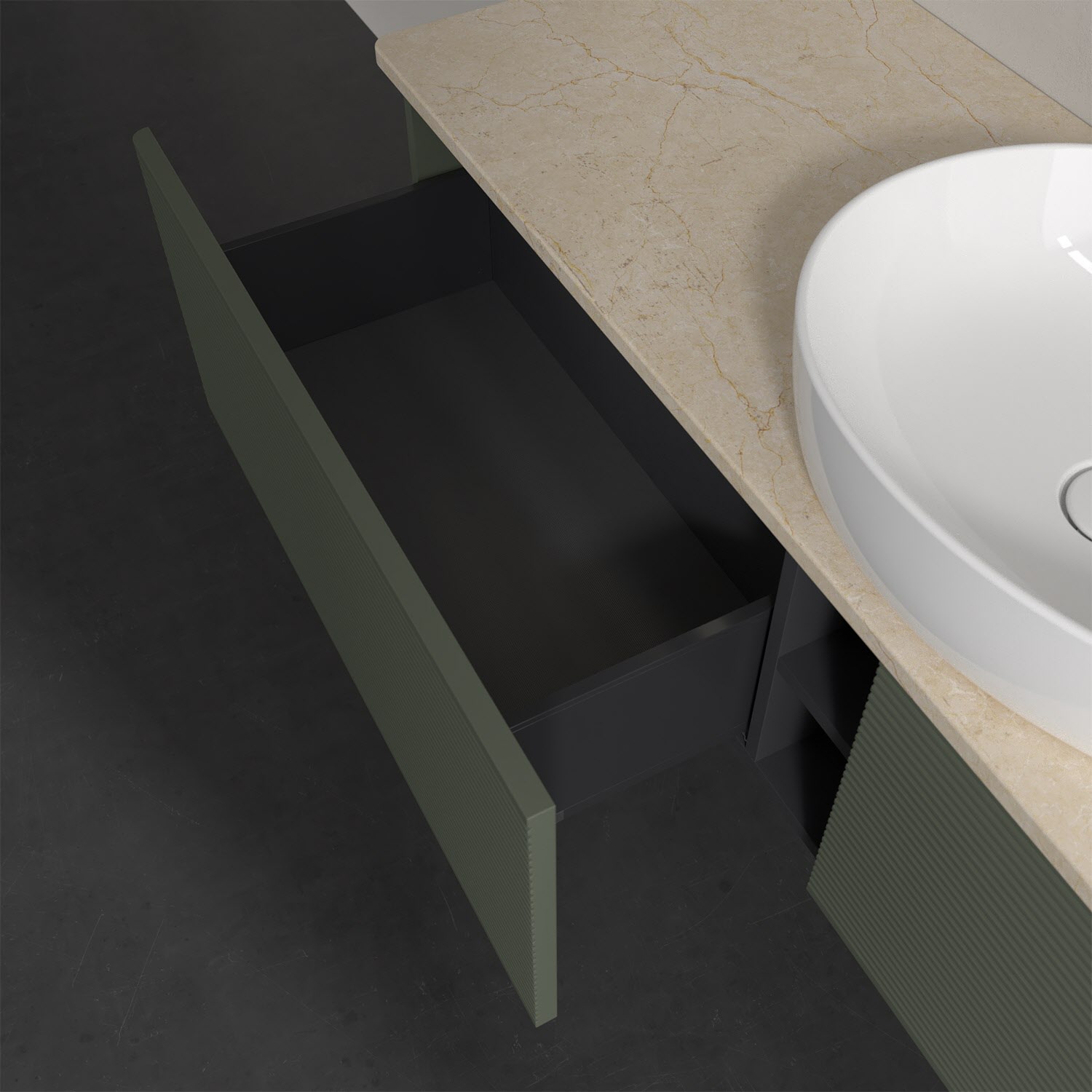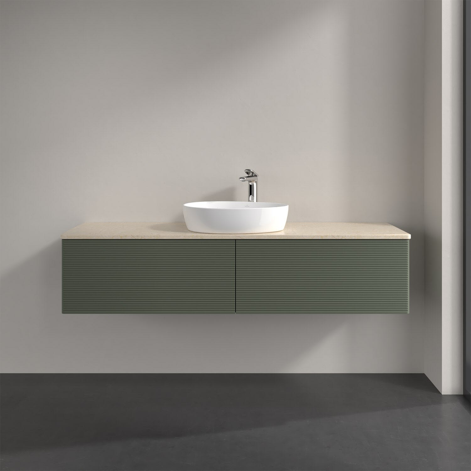 Villeroy & Boch Antao Waschbeckenunterschrank, 160 x 36 cm, 2 Auszüge mit LED-Licht, Front mit Struktur, mit Hahnloch, für Waschtisch mittig