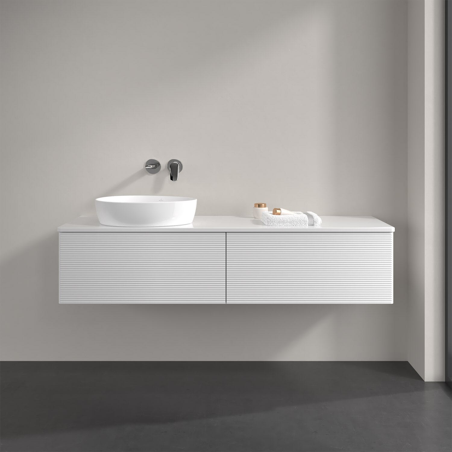 Villeroy & Boch Antao Waschbeckenunterschrank, 160 x 36 cm, 2 Auszüge mit LED-Licht, Front mit Struktur, mit Hahnloch, für Waschtisch links