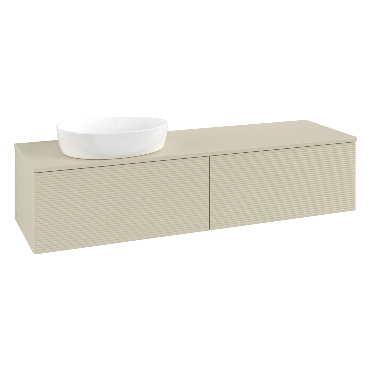Villeroy & Boch Antao Waschbeckenunterschrank, 160 x 36 cm, 2 Auszüge mit LED-Licht, Front mit Struktur, mit Hahnloch, für Waschtisch links