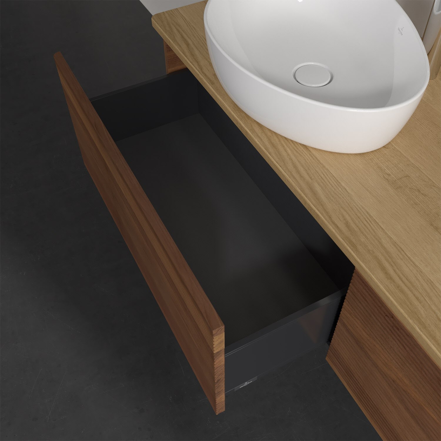 Villeroy & Boch Antao Waschbeckenunterschrank, 160 x 36 cm, 2 Auszüge mit LED-Licht, Front mit Struktur, mit Hahnloch, für Waschtisch links
