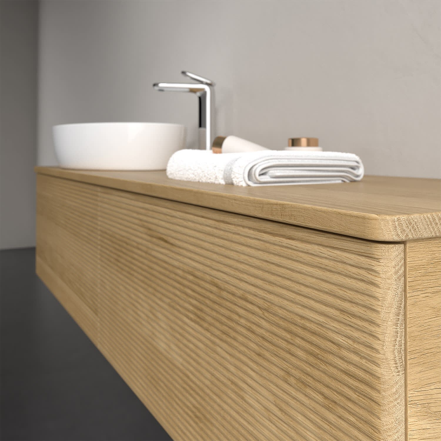 Der wandhängende Antao Waschtischunterschrank bietet mit seinen beiden extra hohen Auszügen und seiner erstaunlichen Größe viel Platz zum Verstauen von Utensilien im Badezimmer. Dank des seitlich platzierten Aufsatzwaschtischs gibt es daneben weiteren Platz für Handtücher, Seifenspender & Co. auf der Waschtischplatte. Inspiriert von der Natur überzeugt der Unterschrank auch optisch mit sanfter Formsprache und abgerundete Kanten. Die grifflosen Auszüge mit strukturierter Front sind mit der Push-to-Open Funktion ausgestattet und verfügen über einen Antirutschboden, damit Utensilien sicher verstaut werden können. Den Überblick behält man dank der warmweißen Auszugsbeleuchtung, die sich automatisch beim Öffnen einschaltet. Mit seiner Vollauszug- und Selbsteinzug-Funktion ist der Schrank einfach praktisch und leicht zu bedienen. Qualität von Villeroy & Boch! Für eine besonders leichte Pflege sorgt die mehrschichtig deckend lackierte Oberfläche. Bei der Ausführung in Massivholz wird dank des verarbeiteten Massivholzes jedes Möbel zu einem Unikat, das sich durch das lebendige Naturmaterial durch seine einzigartige Struktur und Maserung auszeichnet.