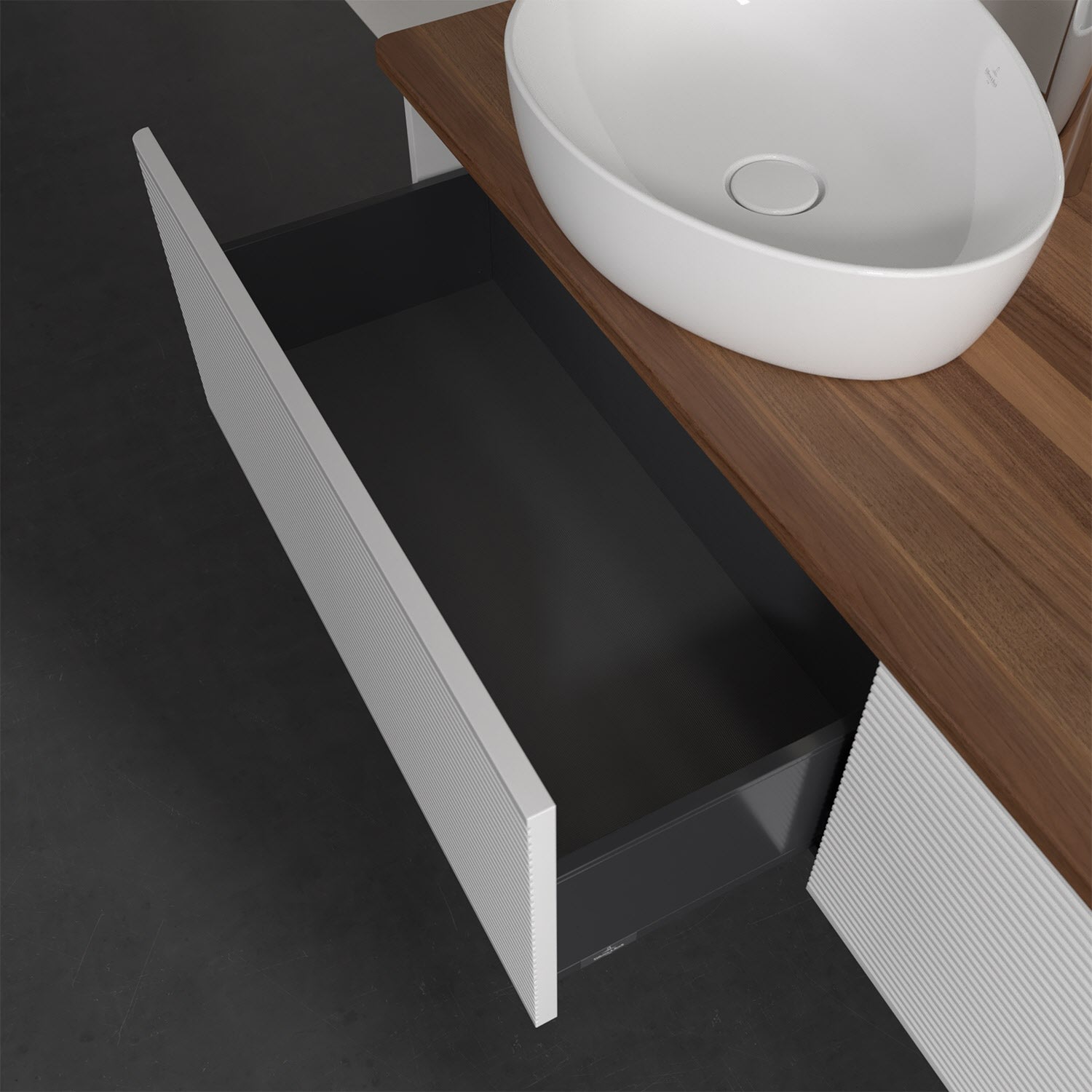 Villeroy & Boch Antao Waschbeckenunterschrank, 160 x 36 cm, 2 Auszüge mit LED-Licht, Front mit Struktur, mit Hahnloch, für Waschtisch links
