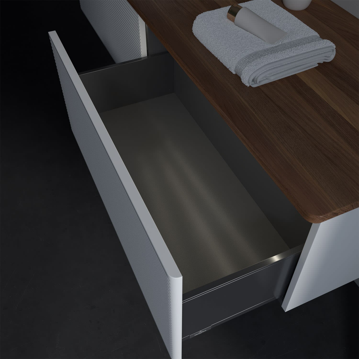 - kein Umfallen oder Verrutschen von Pflegeprodukten in den Schubladen dank rutschhemmendem Boden