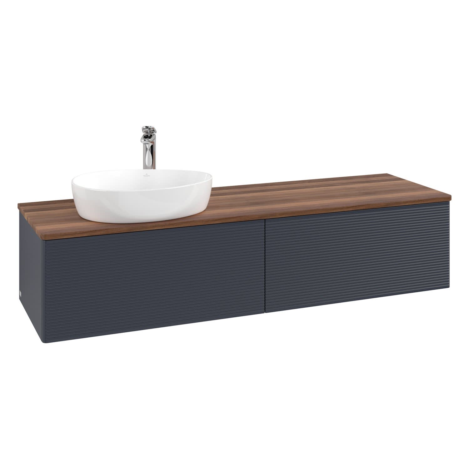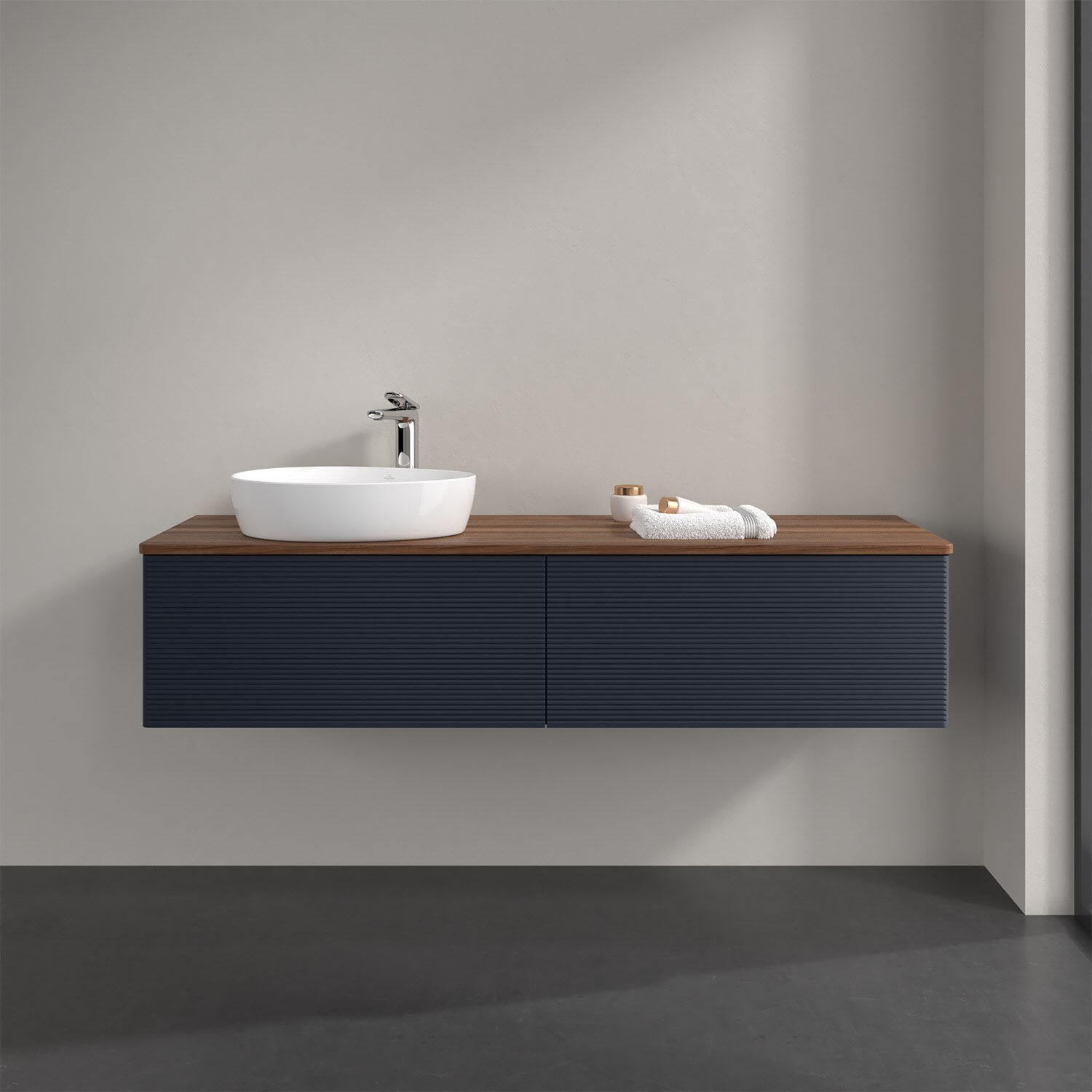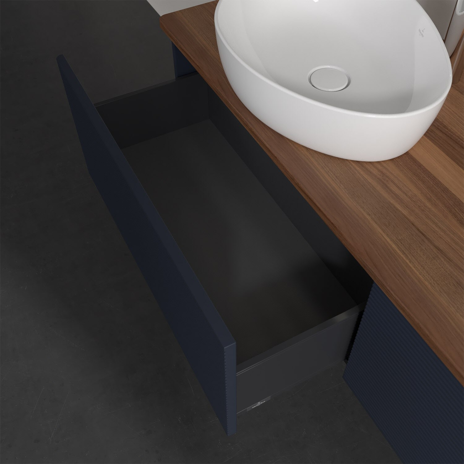 Villeroy & Boch Antao Waschbeckenunterschrank, 160 x 36 cm, 2 Auszüge mit LED-Licht, Front mit Struktur, mit Hahnloch, für Waschtisch links