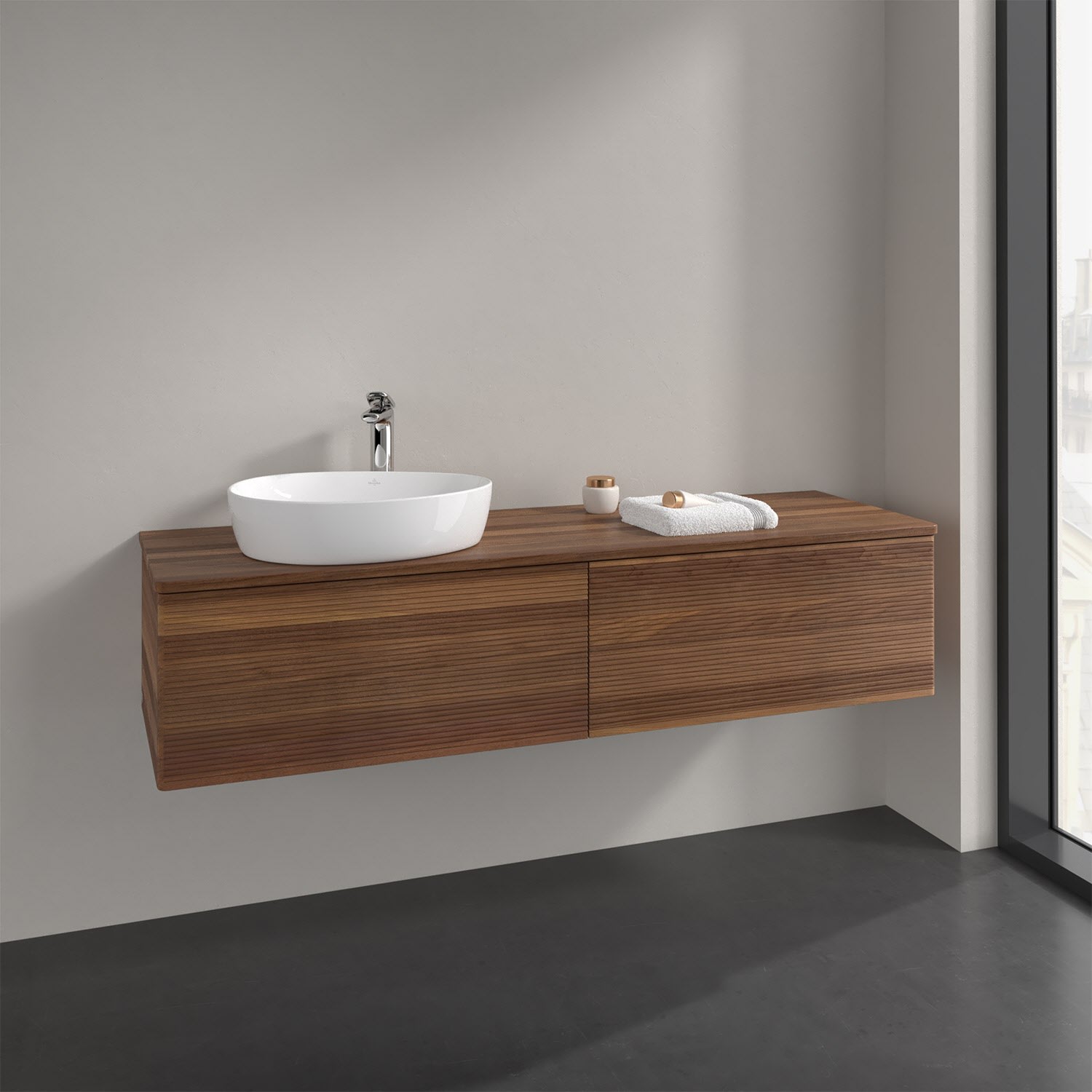 Der wandhängende Antao Waschtischunterschrank bietet mit seinen beiden extra hohen Auszügen und seiner erstaunlichen Größe viel Platz zum Verstauen von Utensilien im Badezimmer. Dank des seitlich platzierten Aufsatzwaschtischs gibt es daneben weiteren Platz für Handtücher, Seifenspender & Co. auf der Waschtischplatte. Inspiriert von der Natur überzeugt der Unterschrank auch optisch mit sanfter Formsprache und abgerundete Kanten. Die grifflosen Auszüge mit strukturierter Front sind mit der Push-to-Open Funktion ausgestattet und verfügen über einen Antirutschboden, damit Utensilien sicher verstaut werden können. Den Überblick behält man dank der warmweißen Auszugsbeleuchtung, die sich automatisch beim Öffnen einschaltet. Mit seiner Vollauszug- und Selbsteinzug-Funktion ist der Schrank einfach praktisch und leicht zu bedienen. Qualität von Villeroy & Boch! Für eine besonders leichte Pflege sorgt die mehrschichtig deckend lackierte Oberfläche. Bei der Ausführung in Massivholz wird dank des verarbeiteten Massivholzes jedes Möbel zu einem Unikat, das sich durch das lebendige Naturmaterial durch seine einzigartige Struktur und Maserung auszeichnet.