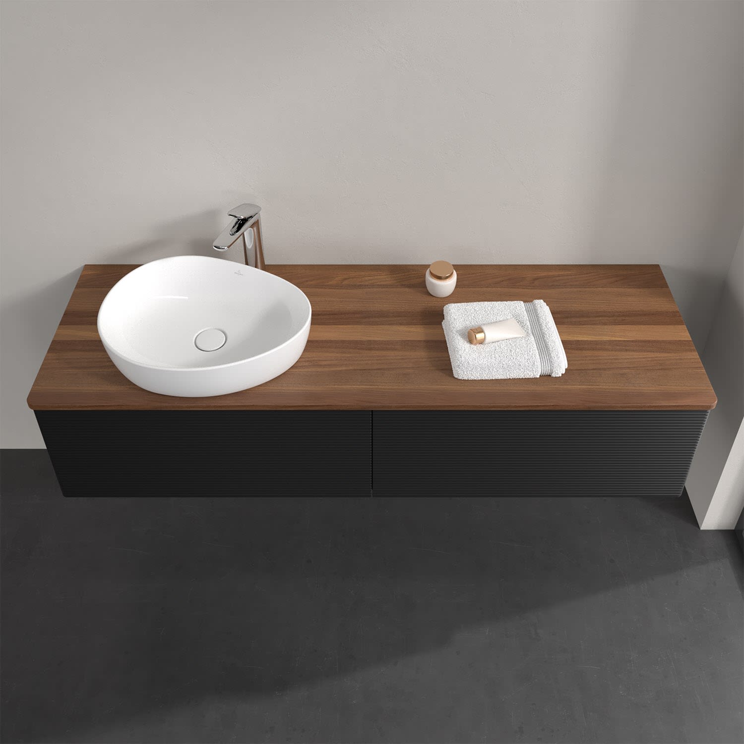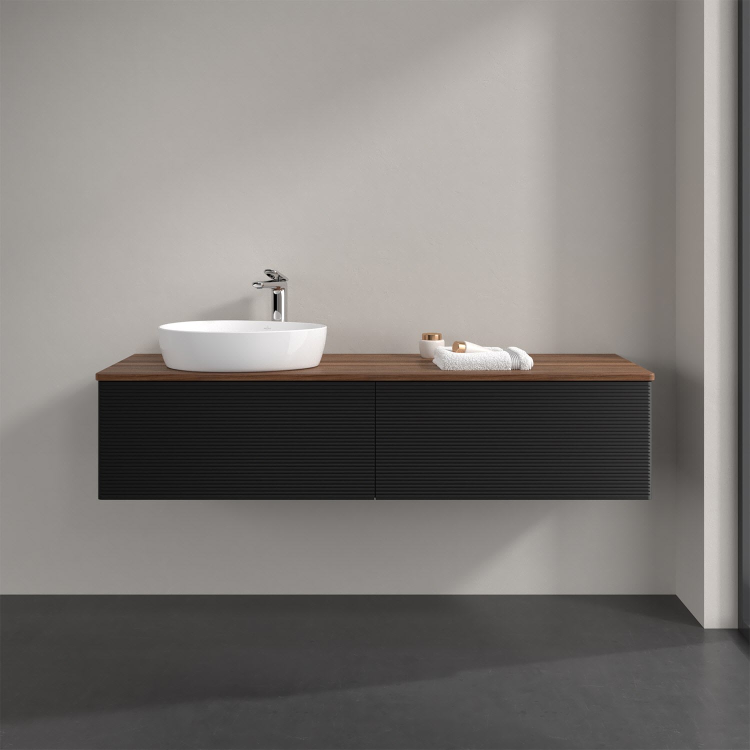 Villeroy & Boch Antao Waschbeckenunterschrank, 160 x 36 cm, 2 Auszüge mit LED-Licht, Front mit Struktur, mit Hahnloch, für Waschtisch links