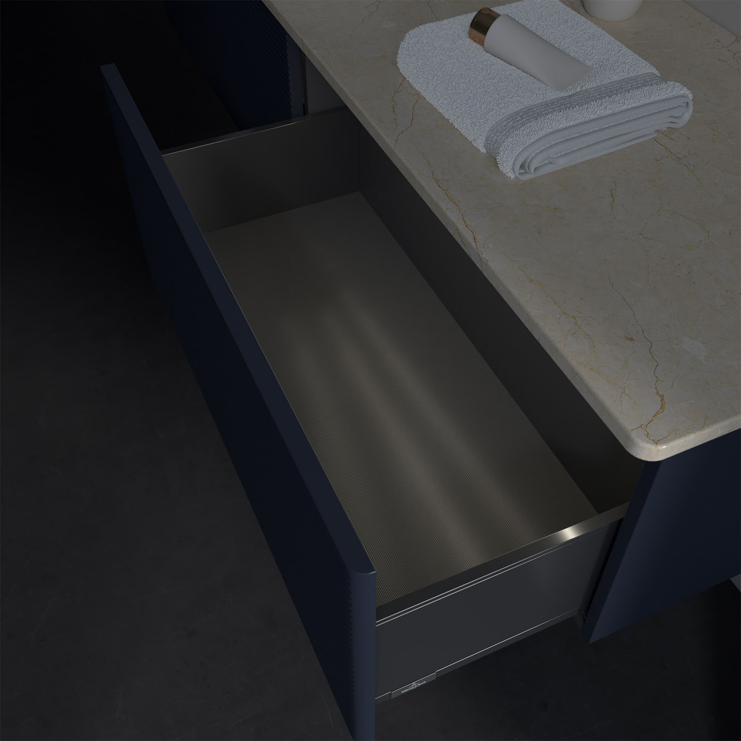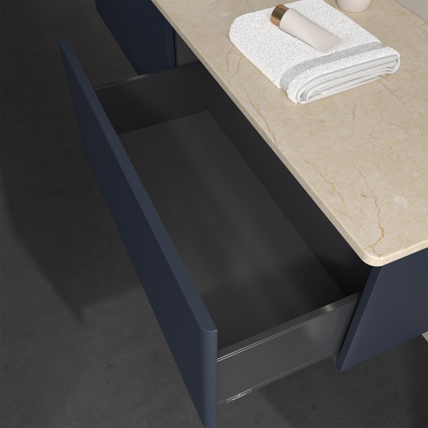 - kein Umfallen oder Verrutschen von Pflegeprodukten in den Schubladen dank rutschhemmendem Boden