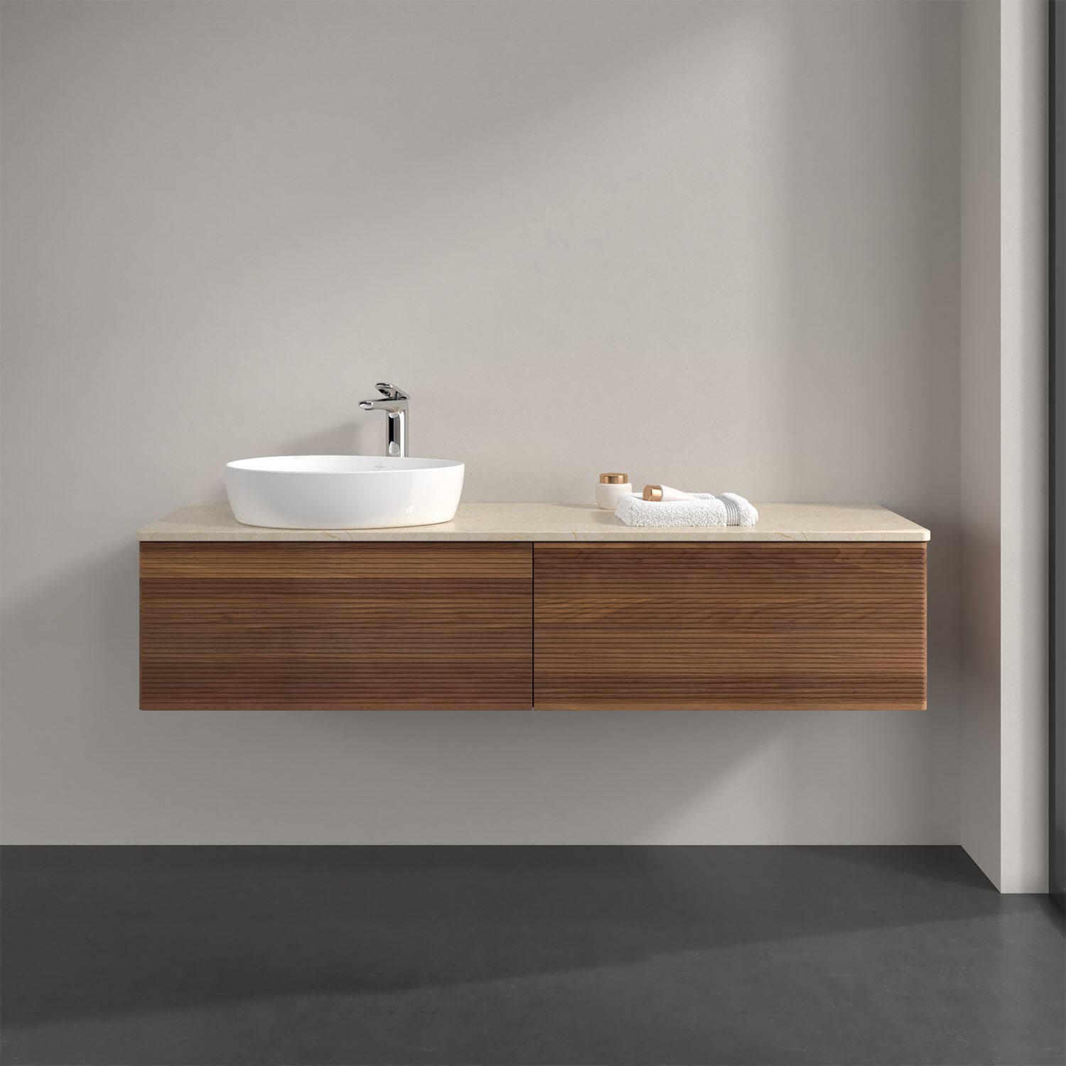 Villeroy & Boch Antao Waschbeckenunterschrank, 160 x 36 cm, 2 Auszüge mit LED-Licht, Front mit Struktur, mit Hahnloch, für Waschtisch links