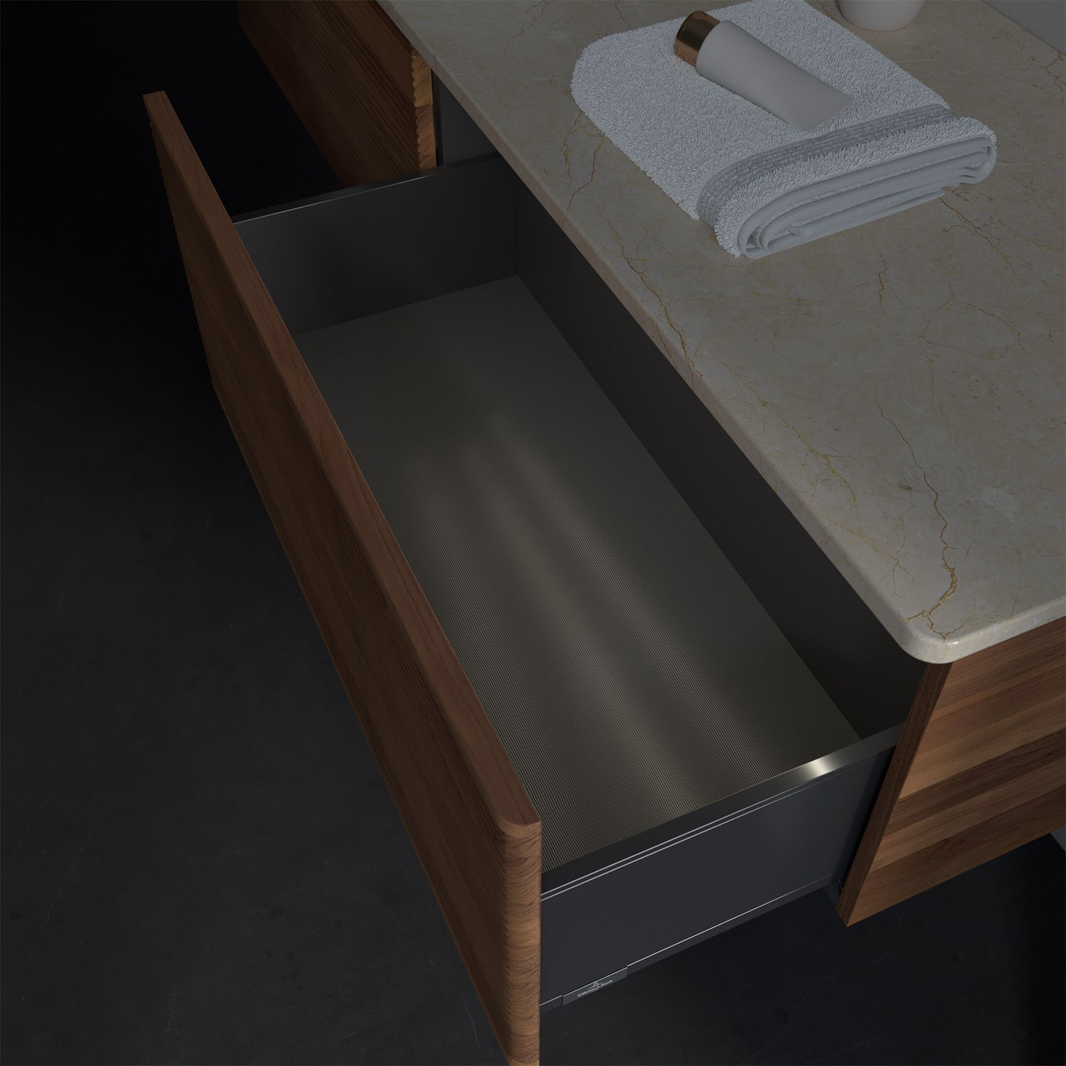 - kein Umfallen oder Verrutschen von Pflegeprodukten in den Schubladen dank rutschhemmendem Boden