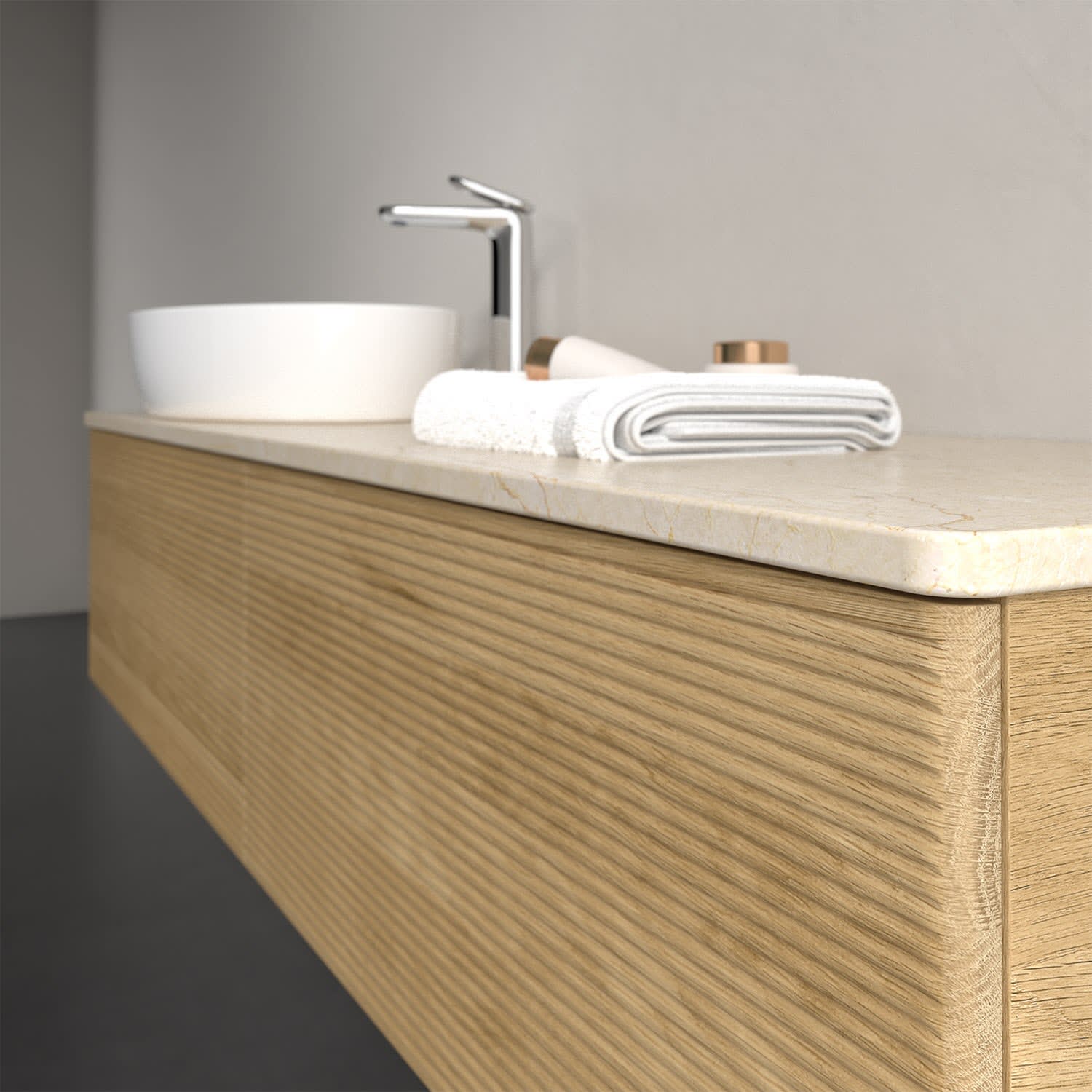 Für diesen Waschbeckenunterschrank stehen Ihnen Aufsatzwaschtische aus verschiedenen Serien zur Verfügung (siehe "Passliste" unter Downloads). Ein ausgewähltes Beispiel finden Sie im Zubehör. Den Waschtisch bitte separat mitbestellen.