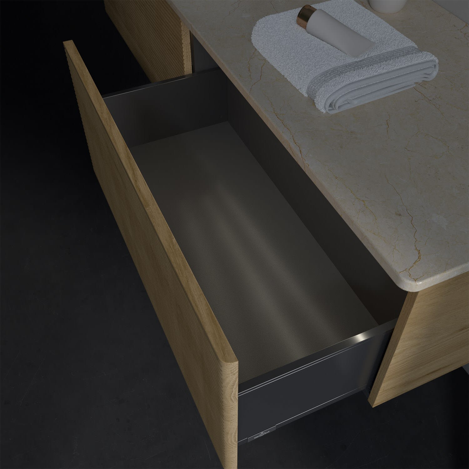 - kein Umfallen oder Verrutschen von Pflegeprodukten in den Schubladen dank rutschhemmendem Boden