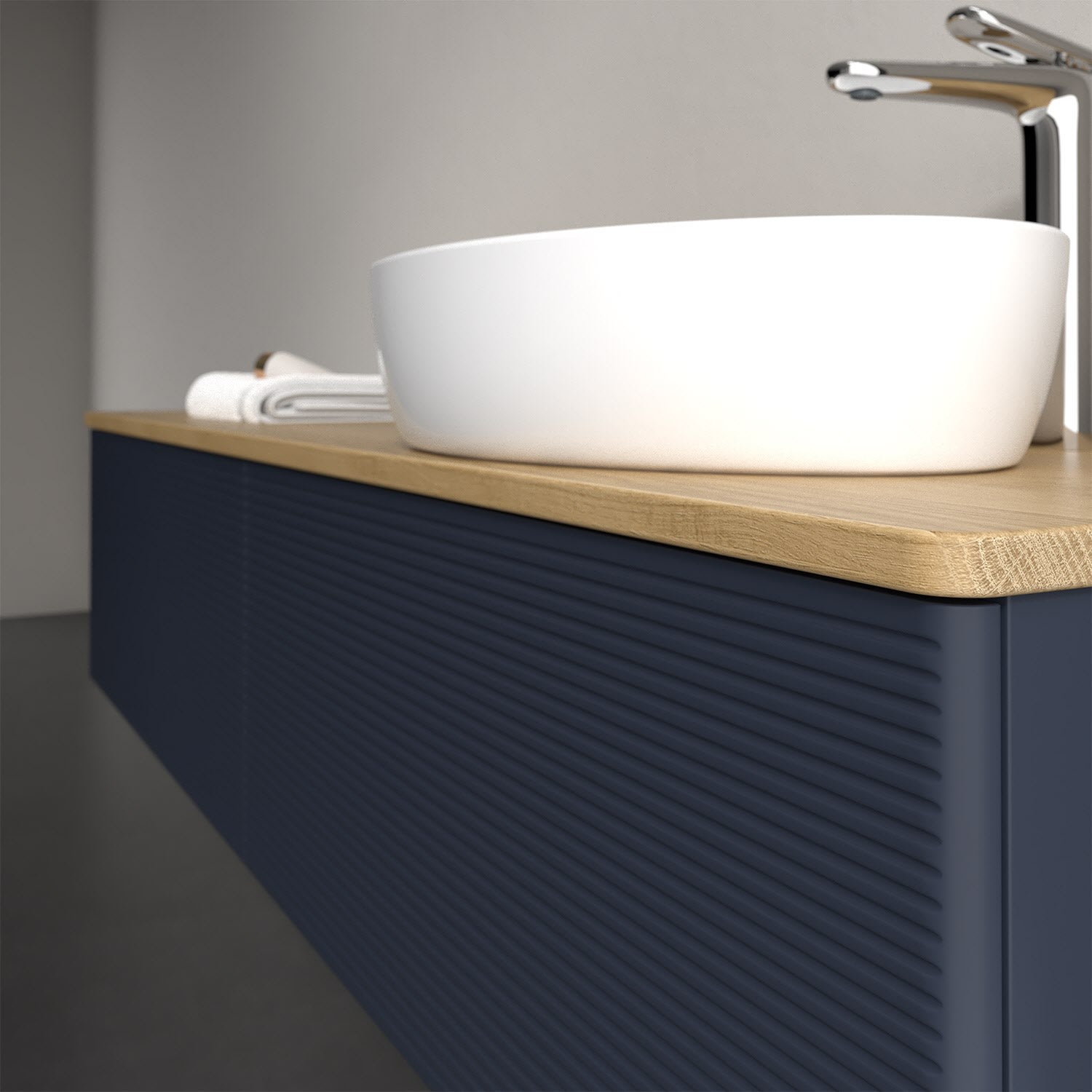 Für diesen Waschbeckenunterschrank stehen Ihnen Aufsatzwaschtische aus verschiedenen Serien zur Verfügung (siehe "Passliste" unter Downloads). Ein ausgewähltes Beispiel finden Sie im Zubehör. Den Waschtisch bitte separat mitbestellen.