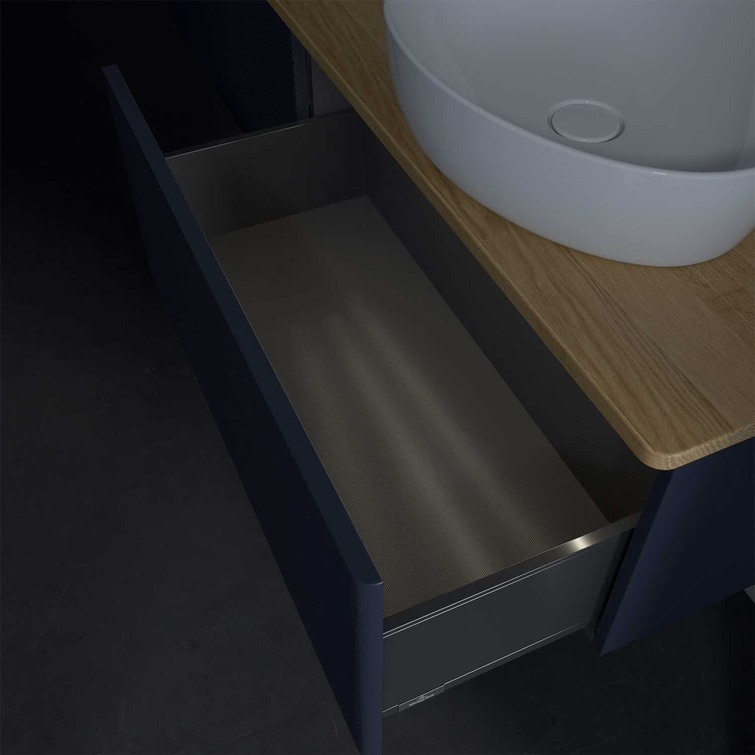 - kein Umfallen oder Verrutschen von Pflegeprodukten in den Schubladen dank rutschhemmendem Boden